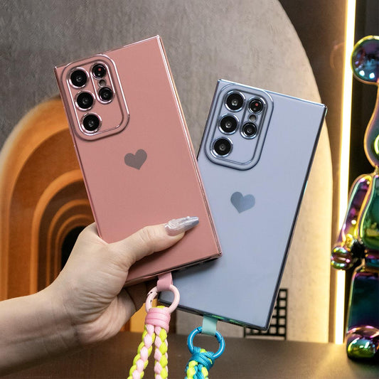 Luxury Love Heart Side Pattern Phone Case With Woven Wristband For Samsung S24 S23 S22 S21 FE Plus Ultra A13 A14 A15 A23 A24 A34 A35 A52