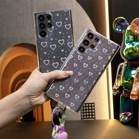 For Samsung S24 S23 S22 Plus Ultra Case, Clear Laser Love Heart, With Love Heart Keychain, Glitter Luxury Elegant Case For Samsung A14 A15 A24 A34 A52 A53 A54 A55 4G 5G Shockproof Hard Cover