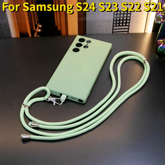 Silicone Matte Phone Case With Woven Lanyard For Samsung S25 S24 S23 S22 Camera Protect Soft Cover