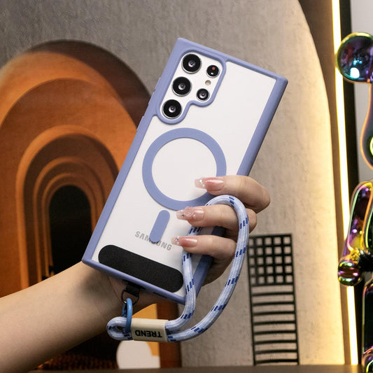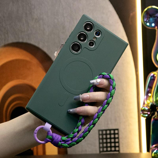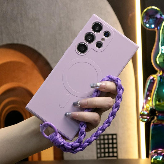Strong Magnetic Case With Woven Wristband For Samsung S24FE S24Ultra S22 S23 S24 Plus FE Ultra, Compatible with MagSafe, Soft Liquid Silicone Shockproof Phone Case With Microfiber Lining