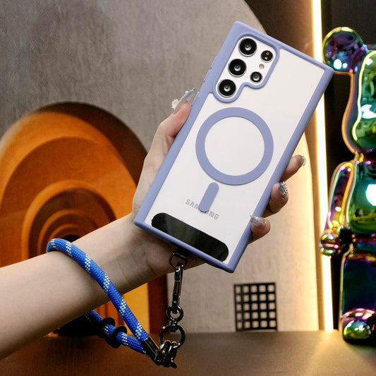 Transparent Magnetic Shockproof Hard Phone Case With Short Wristband For Samsung Galaxy S24 S23 S22 Plus Ultra Silicone Candy Color Edges Clear Acrylic Cover