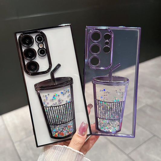 Three-Dimensional Quicksand Phone Case For Samsung S22 S23 S24 Ultra Plating Clear TPU Soft Shell For Fashion Trends Girls And Women