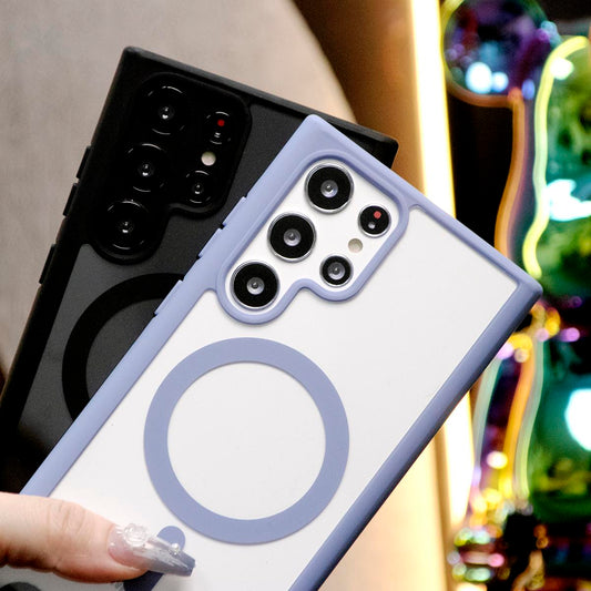 Two-tone PC Matte Anti-Fingerprint Shockproof Hard Magnetic Phone Case Anti-fall Bumper Shockproof Cover For Samsung S24 S24Plus S24Ultra S23 S23FE S23Plus S23Ultra S22Ultra