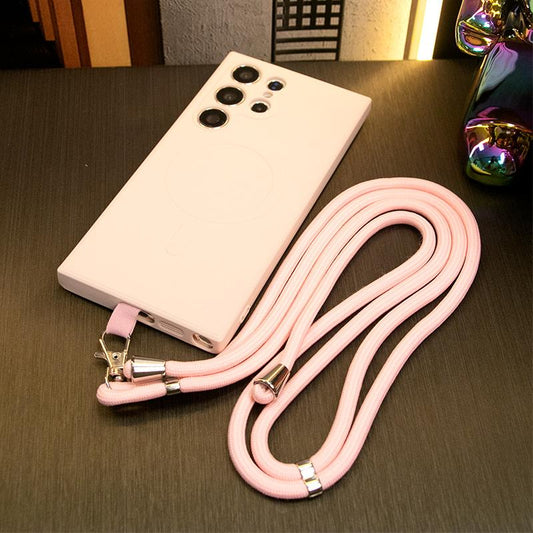 Strong Magnetic Case With Woven Lanyard For Samsung S22 S23 S24 Plus FE Ultra , Compatible with MagSafe, Soft Liquid Silicone Shockproof Phone Case With Microfiber Lining