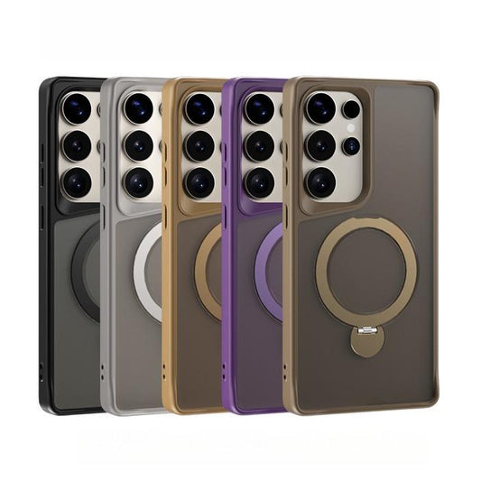 Slim PC Strong Magnetic Phone Case with 360 Rotating Metal Kickstand For Samsung S25Ultra S25Plus S25 Skin Feel Bumper Shockproof Hard Full Cover