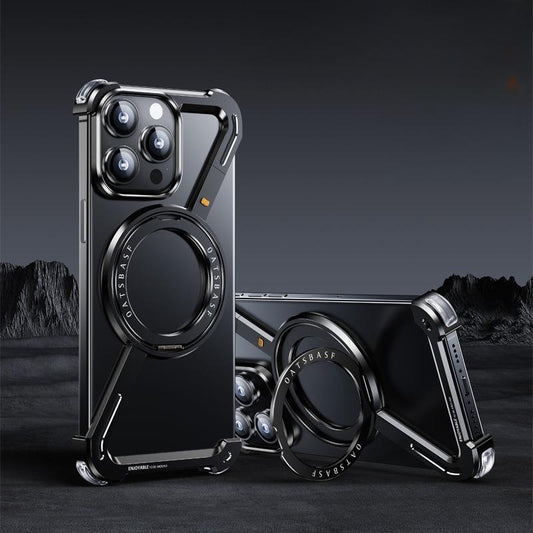 For iPhone 16ProMax 16 15 14 13 Desert Gold Aluminum Z Shape Phone Case with Metal 360 Rotating Kickstand, Anti-Fall for Magsafe Shockproof Frameless Support Wireless Charging Hard Full Cover
