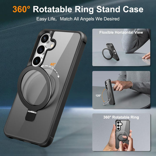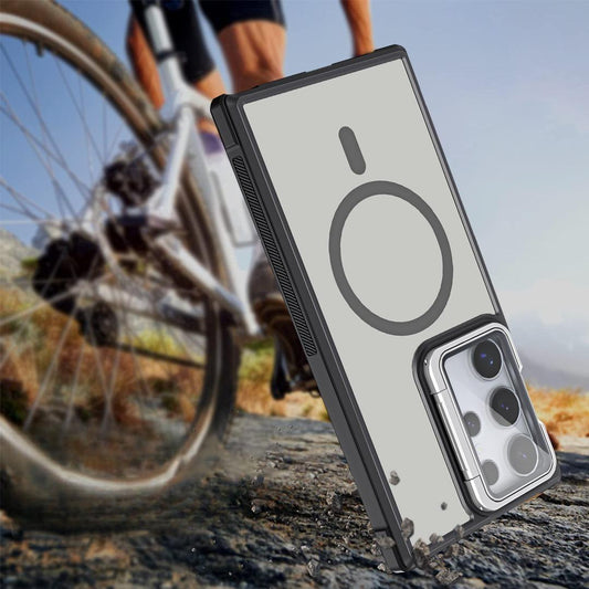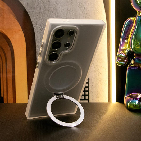 For Samsung S25Ultra S25 S24Ultra S24 S23Ultra S23 Plus Phone Case, Clear Matte Acrylic Strong Magnetic Metal Frame Kickstand [Not Yellowing] Shockproof Hard Full Cover