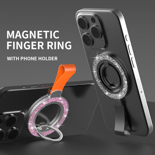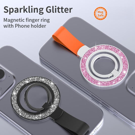 Glitter Portable Strong Magnetic Pivot Stand Phone Holder Wider Soft Silicone Multi-angle Damping Fold Ring Vertical / Horizontal Kickstand, for iPhone 16 15 14 13 12 for Samsung S25 S24 S23