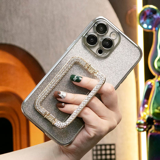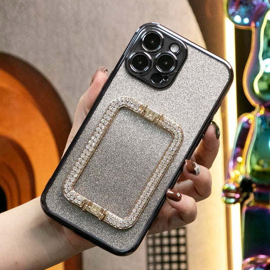 Glitter Transparent Gradient 3D Crystal Square Holder Plating Phone Case For iPhone 16 15 14 13 12 Pro Max Clear Soft TPU Back Cover