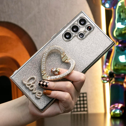 Luxury Diamond Glitter Crystal Love Heart Holder Bracket Glitter Clear Gradient TPU Plating Shockproof Soft Phone Case For Samsung S25 S24 S23 S22 S21 Note20