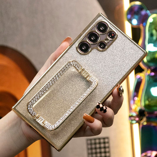 Luxury Diamond 3D Crystal Square Holder Glitter Clear Gradient TPU Plating Shockproof Soft Phone Case For Samsung S24Ultra S24FE S24 S23 S22 S21 FE Plus Ultra