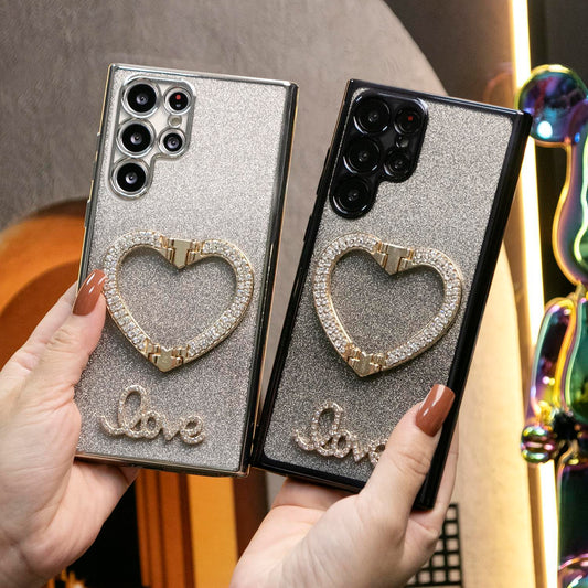Luxury Love Heart Side Pattern Love Heart Holder Plating Phone Case For Samsung S24Ultra S24FE S24 S23 S22 S21Ultra FE Plus Ultra A55 A35 A25 A15
