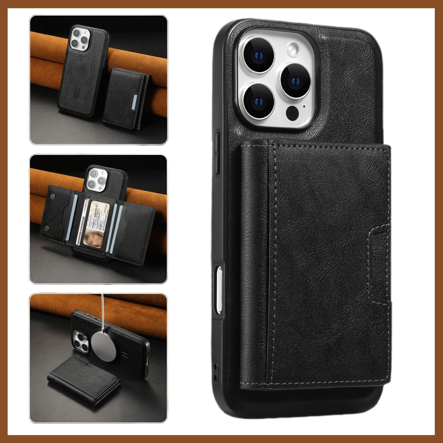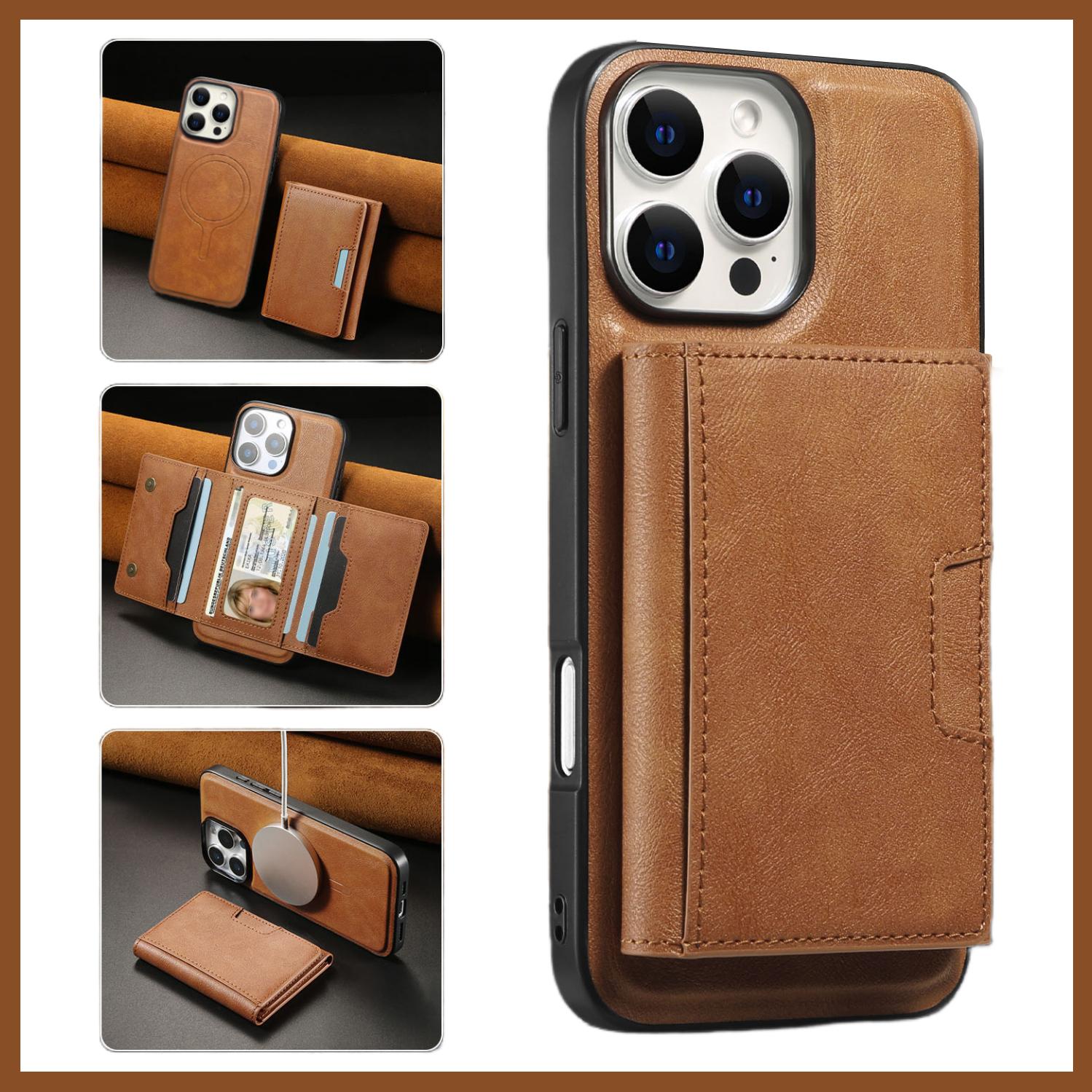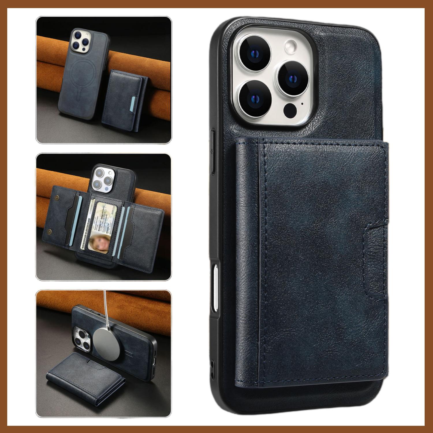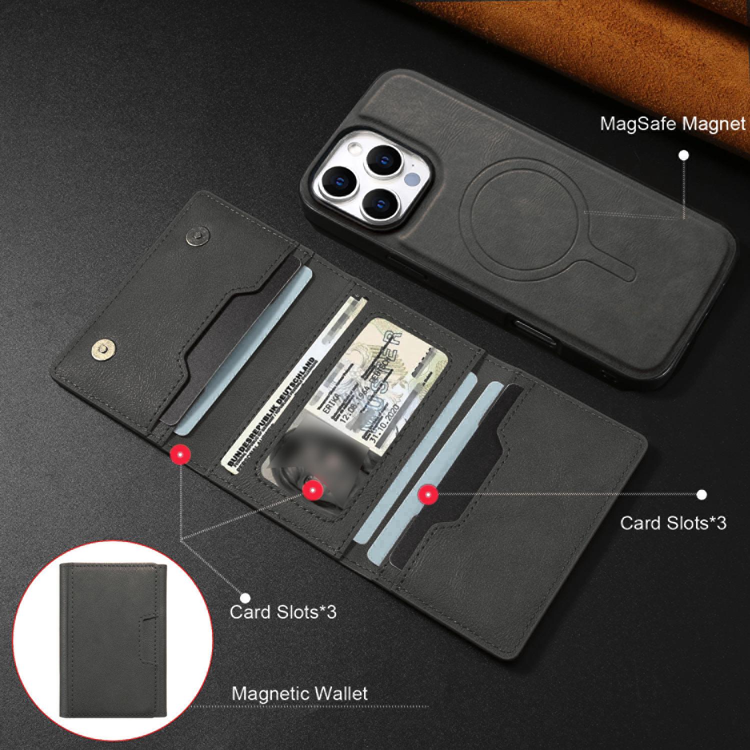 For iPhone 16ProMax 16 15 14 13 12 Leather Phone Case with Strong Magnetic Triple Fold Wallet, Anti-Fall Card Bag Kickstand for Magsafe Shockproof Business Hard Full Cover