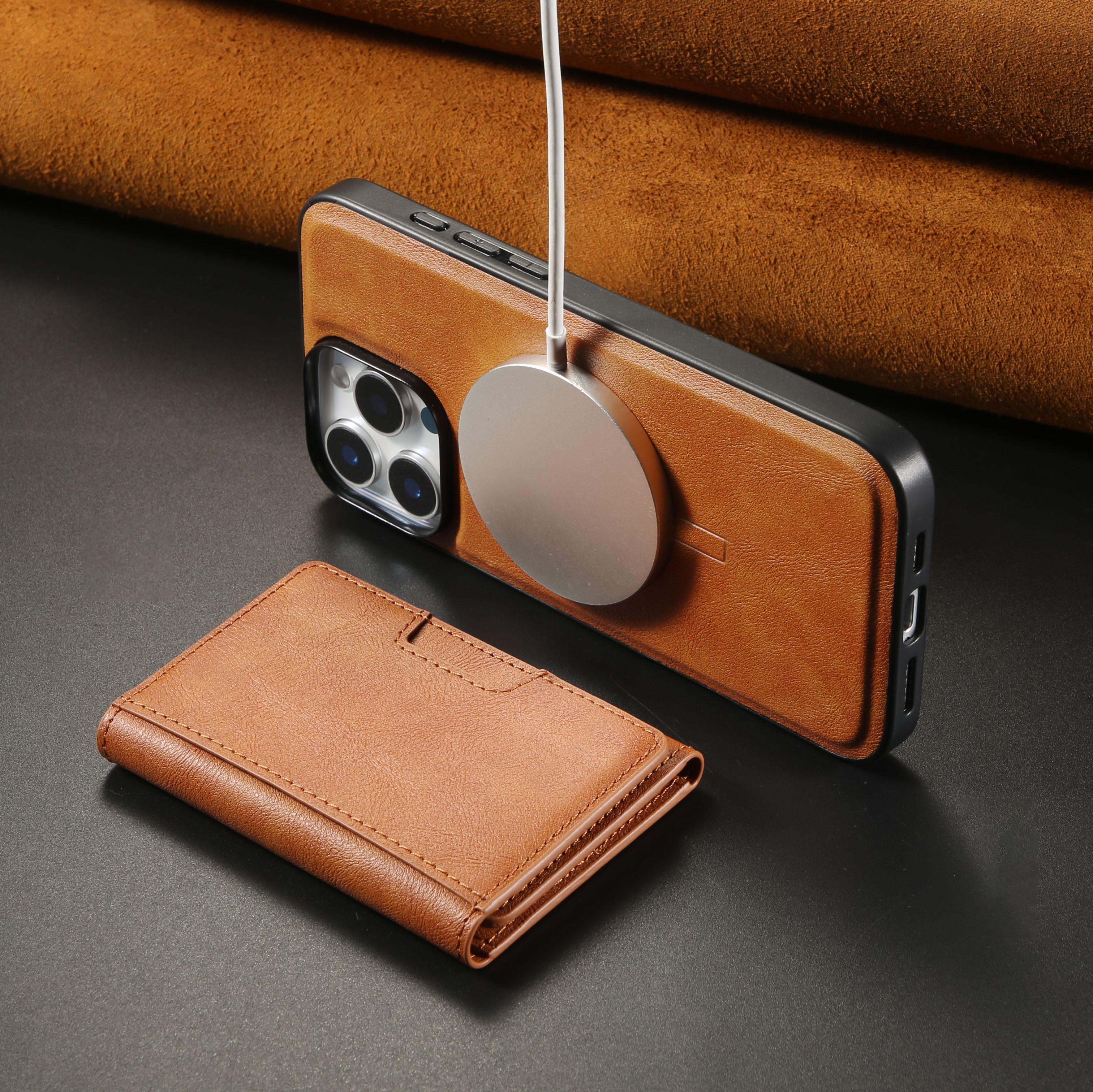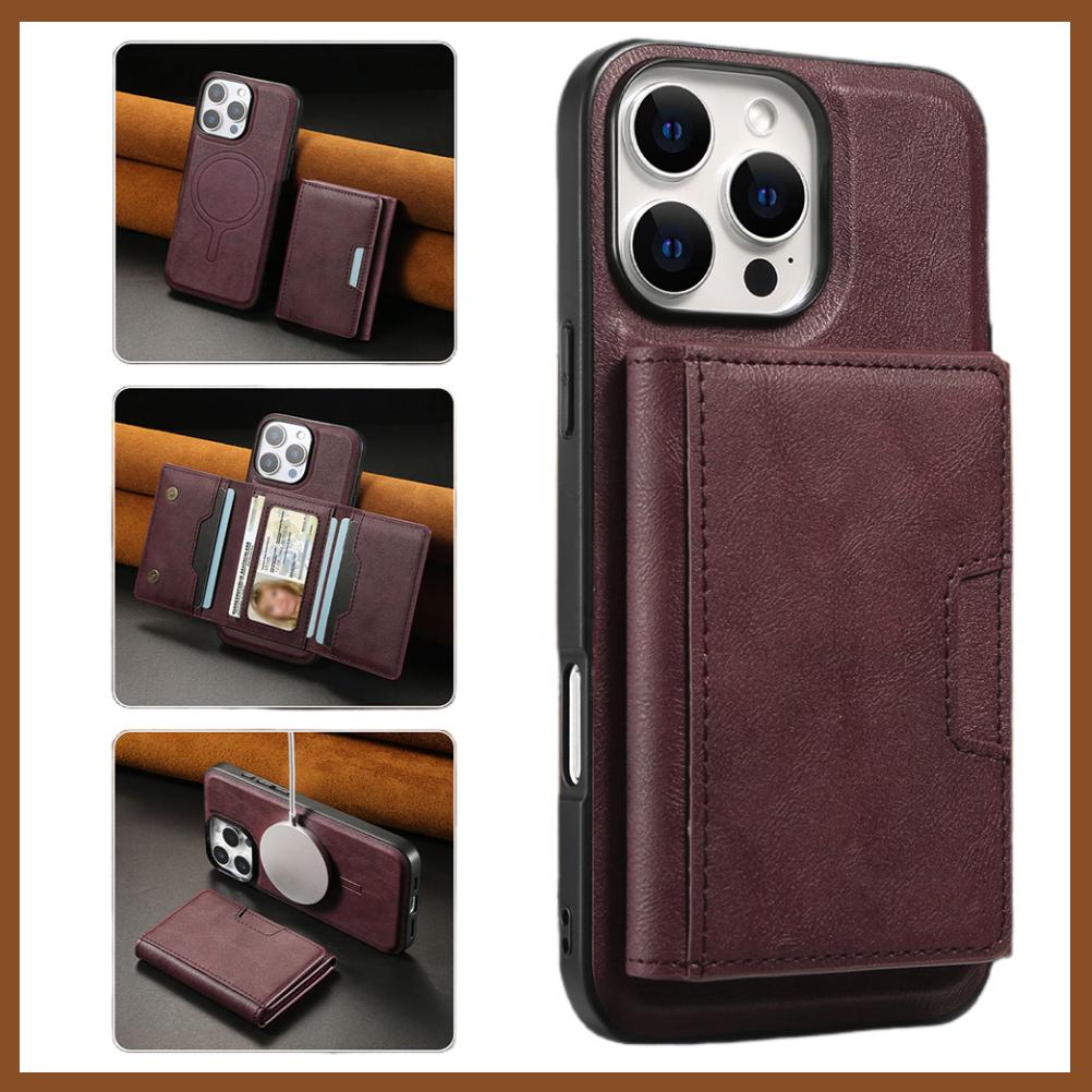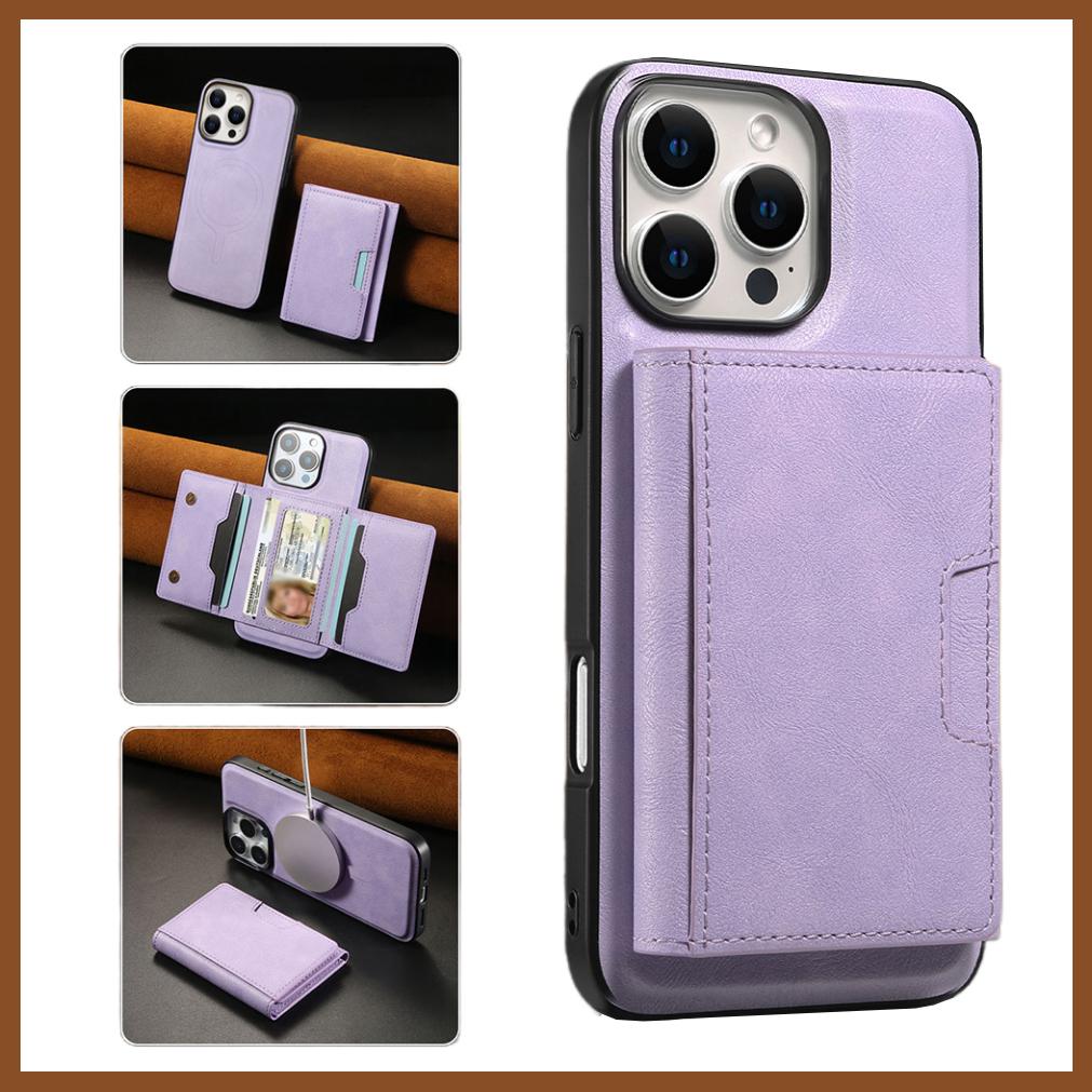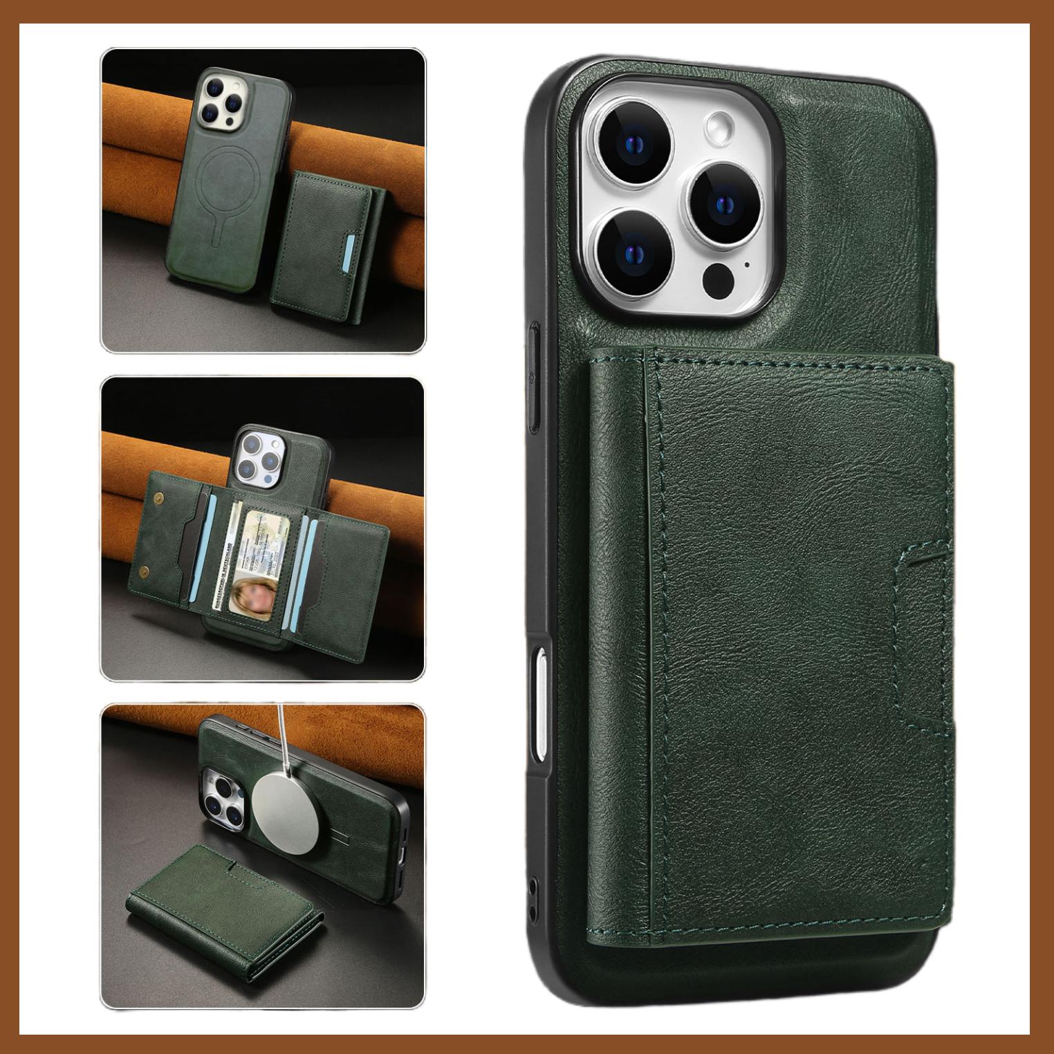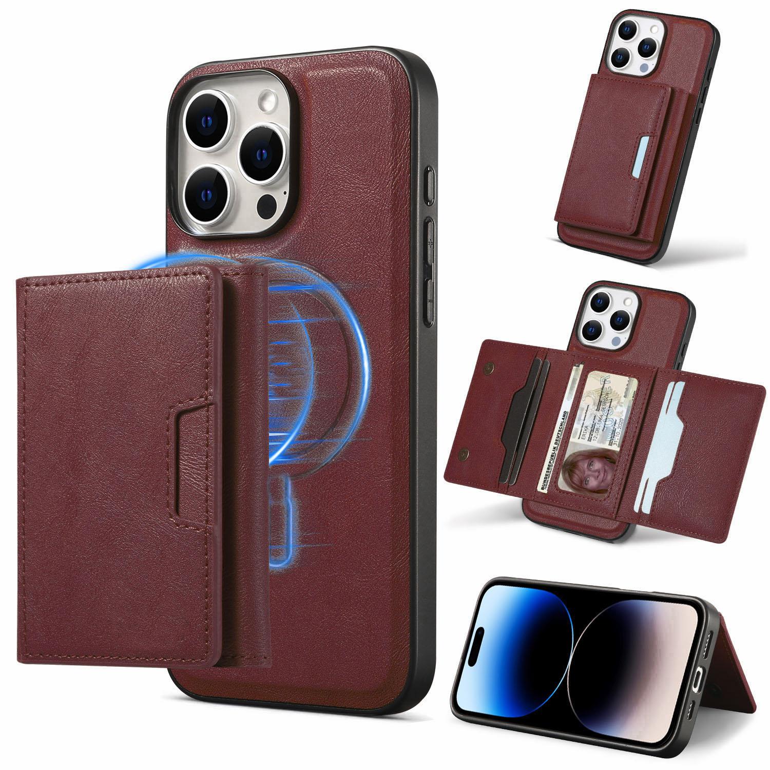 For iPhone 16ProMax 16 15 14 13 12 Leather Phone Case with Strong Magnetic Triple Fold Wallet, Anti-Fall Card Bag Kickstand for Magsafe Shockproof Business Hard Full Cover