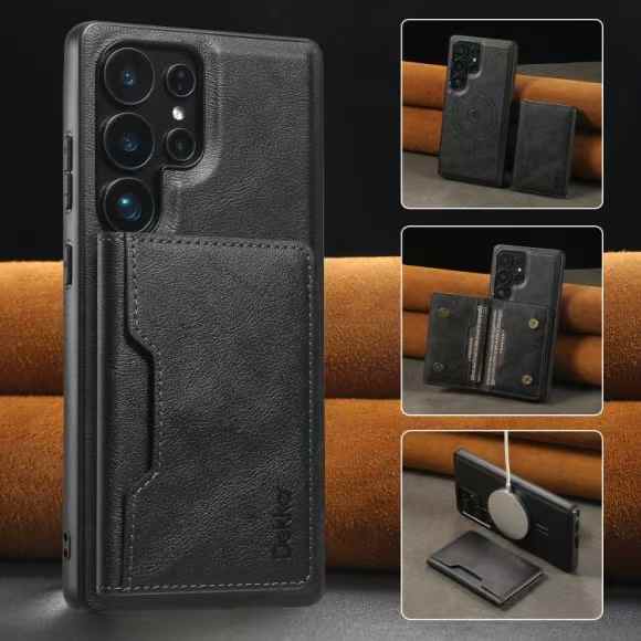 For Samsung S25 S24 S23 A16 A15 A36 A35 A56 A55 A53 Leather Phone Case with Strong Magnetic Double Folding Wallet, Anti-Fall Card Bag Kickstand for Magsafe Shockproof Business Hard Full Cover