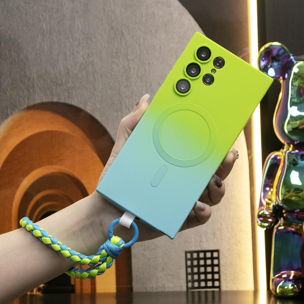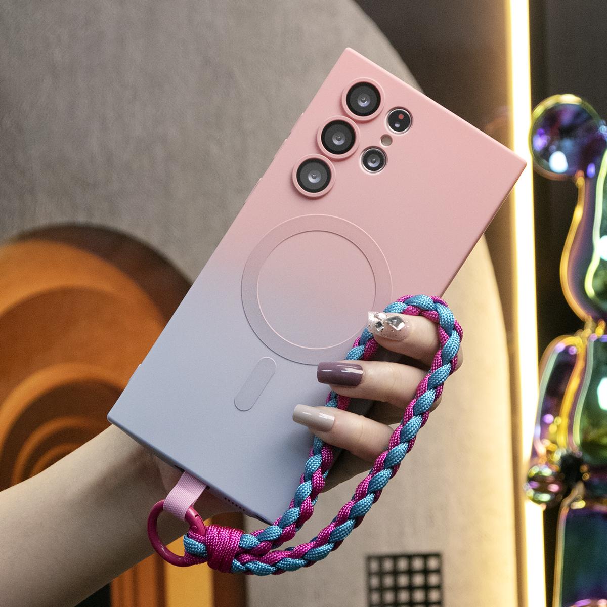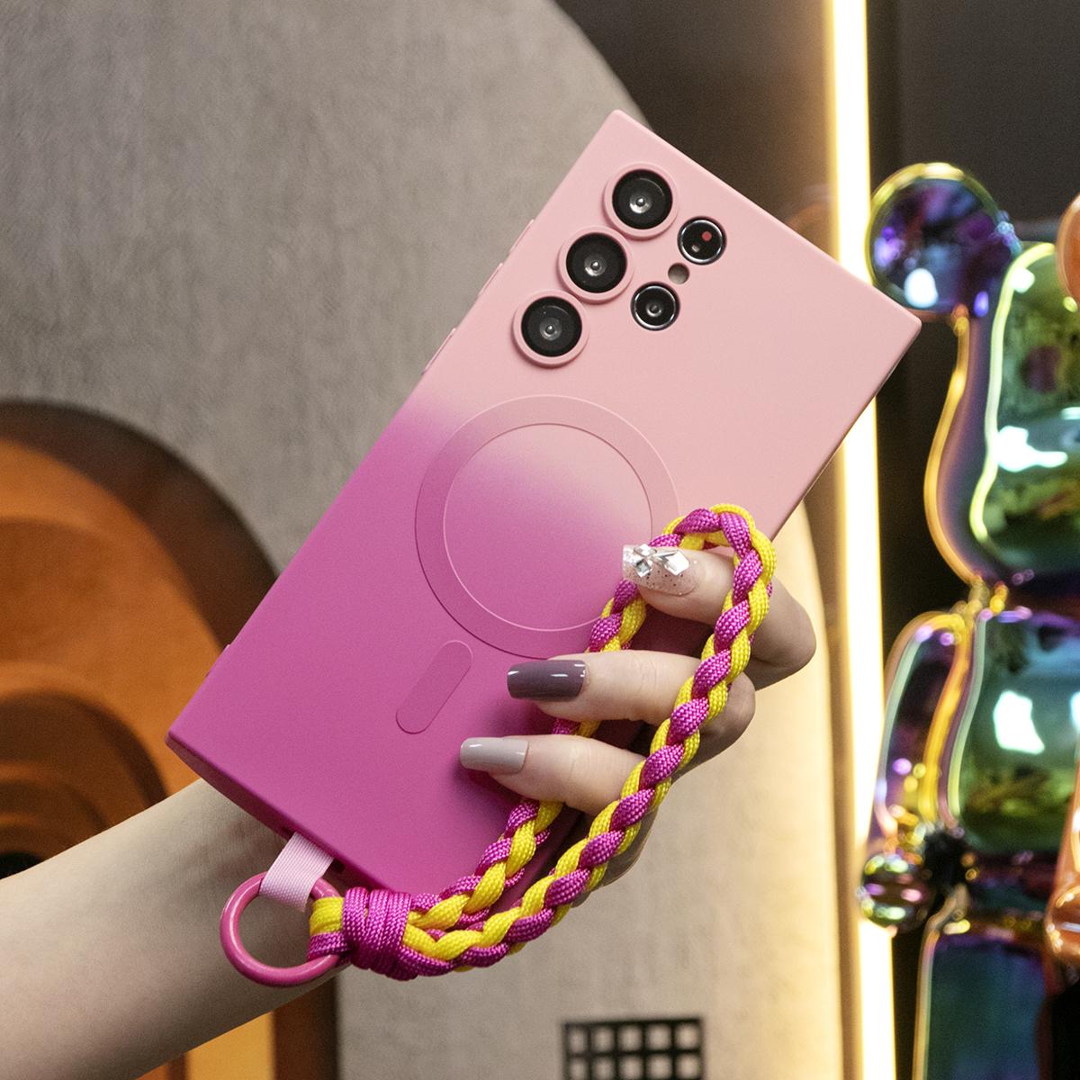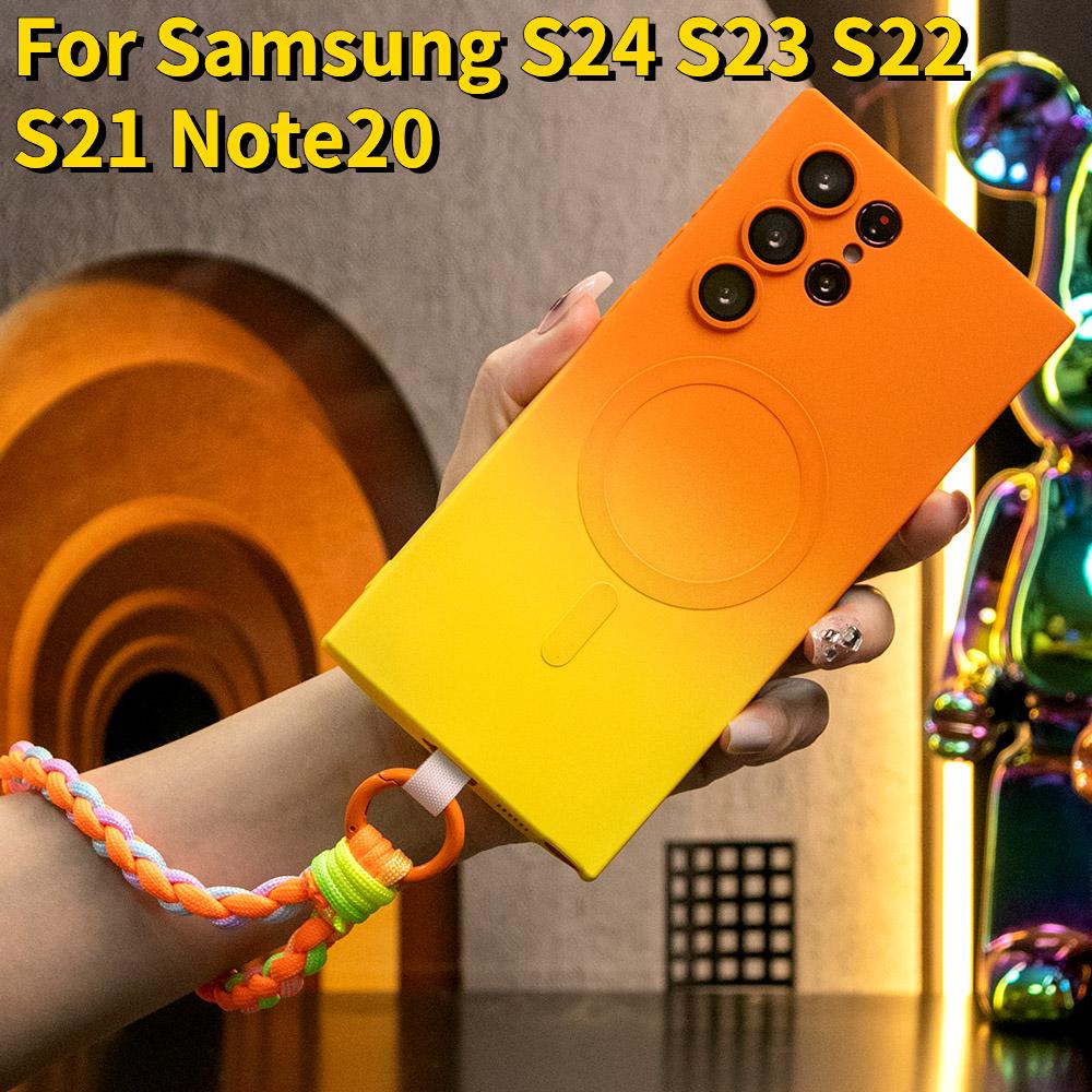 Gradient Color Magnetic Wireless Charge Matte Case with Woven Wristband For Samsung Galaxy S24Ultra S24FE S24 S23 S22 S21 Plus Ultra Note 20 Ultra Wireless Charging Soft Bumper Cover