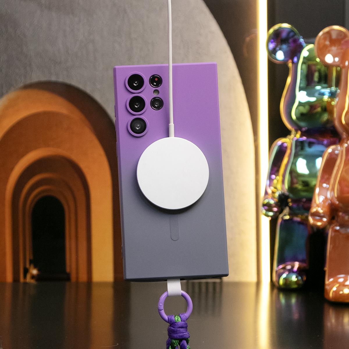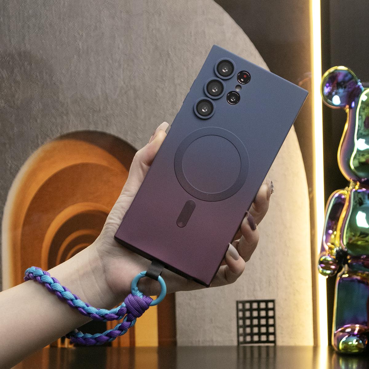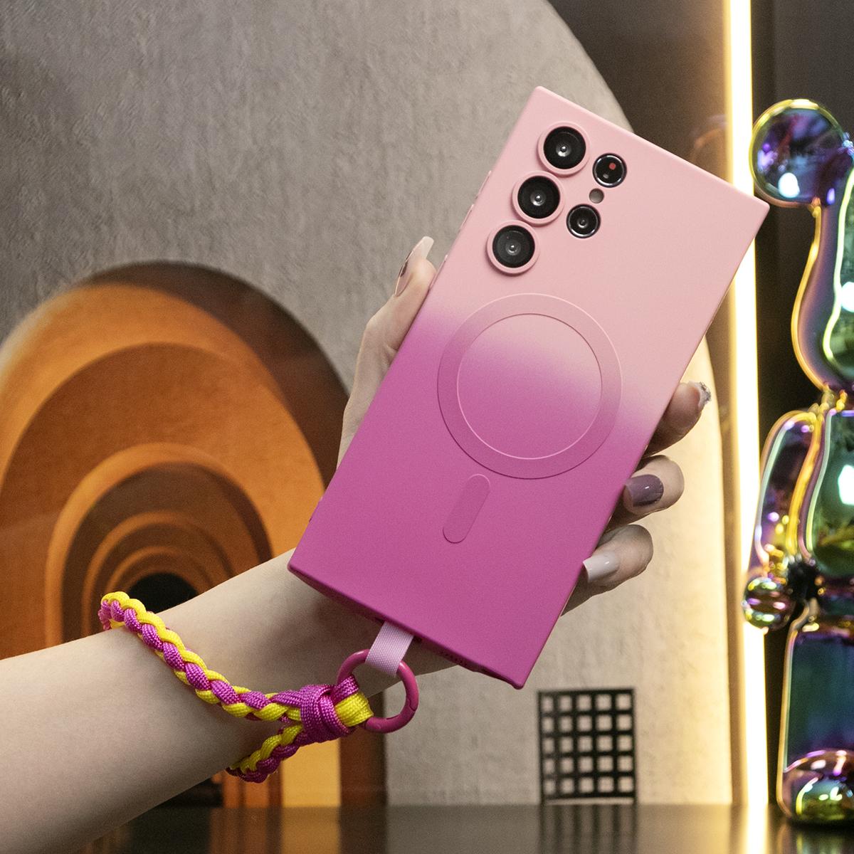 Gradient Color Magnetic Wireless Charge Matte Case with Woven Wristband For Samsung Galaxy S24Ultra S24FE S24 S23 S22 S21 Plus Ultra Note 20 Ultra Wireless Charging Soft Bumper Cover
