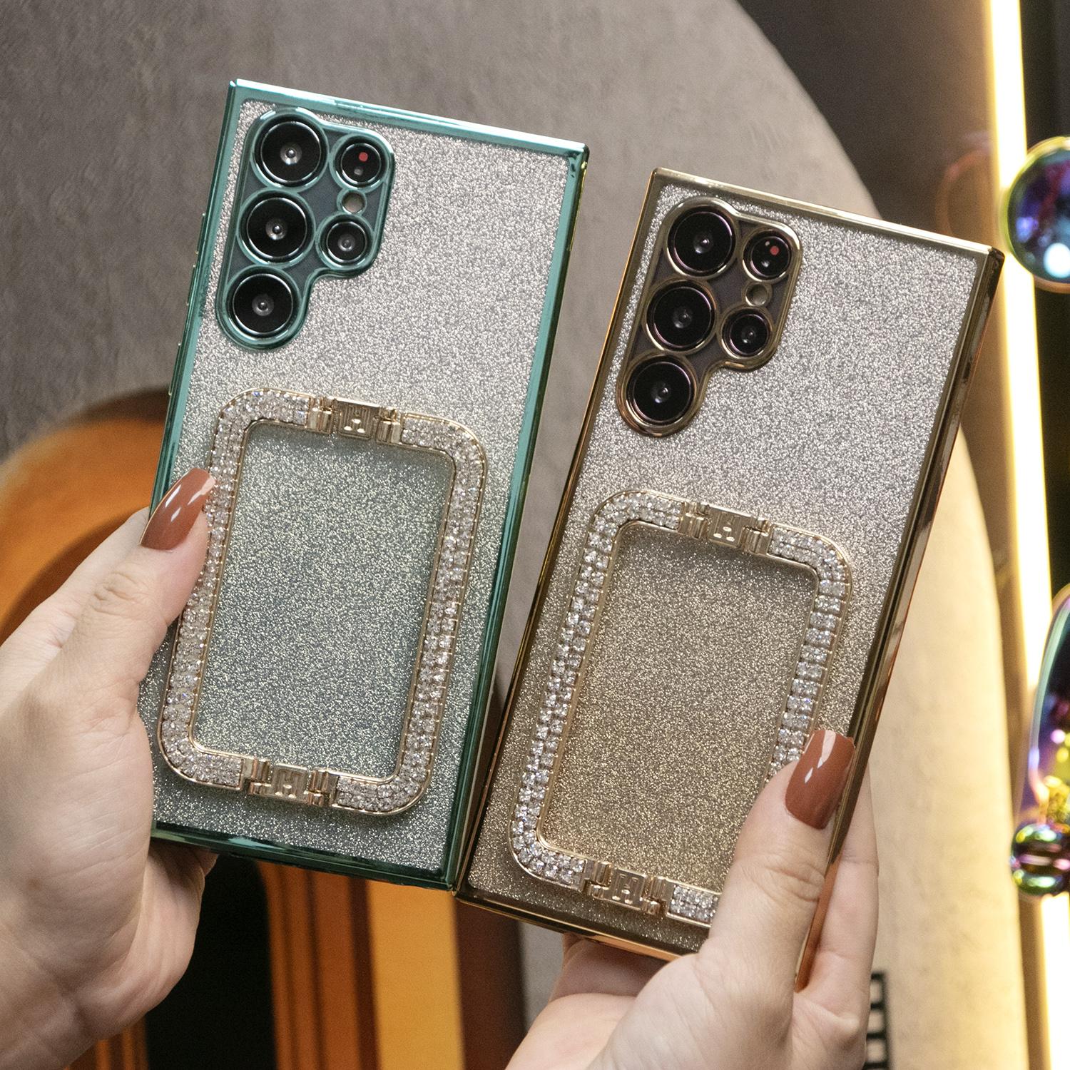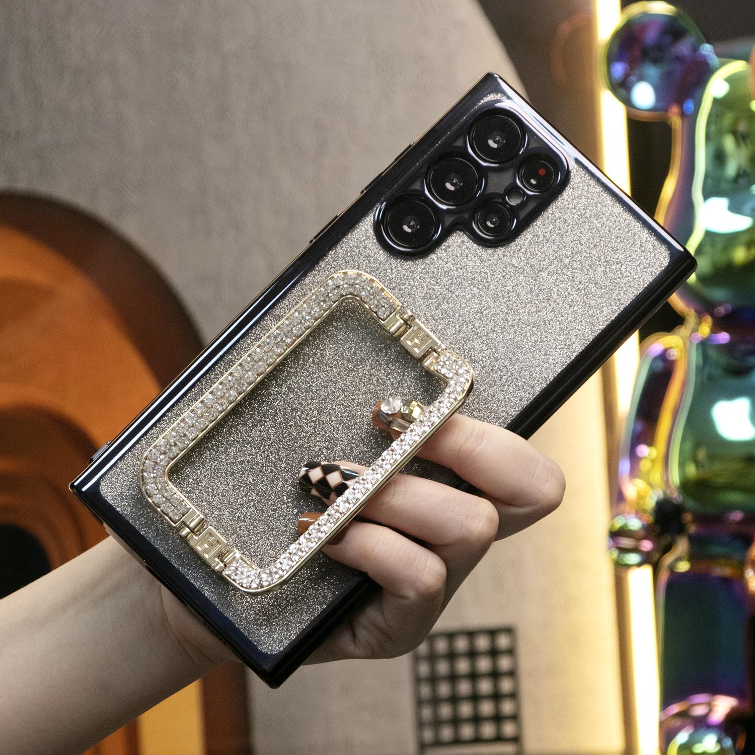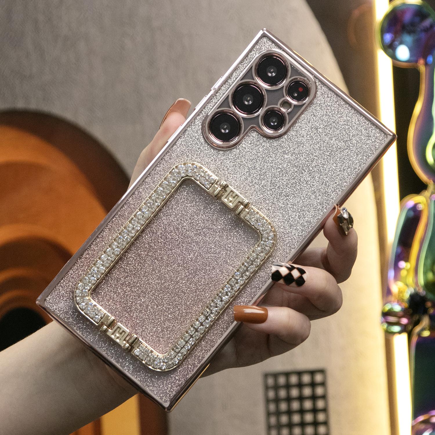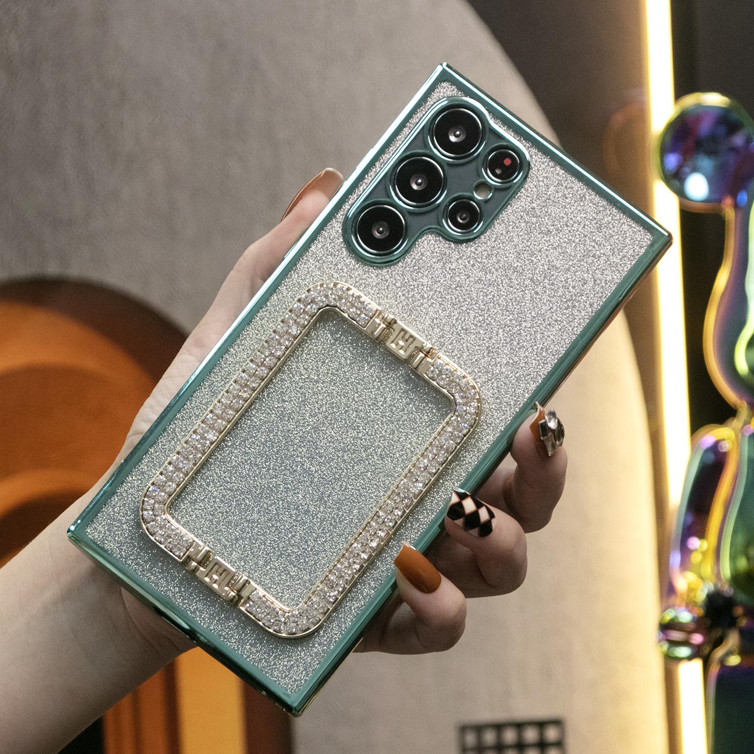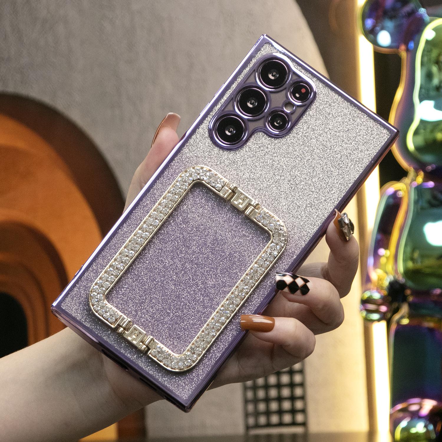 Luxury Diamond 3D Crystal Square Holder Glitter Clear Gradient TPU Plating Shockproof Soft Phone Case For Samsung S24Ultra S24FE S24 S23 S22 S21 FE Plus Ultra