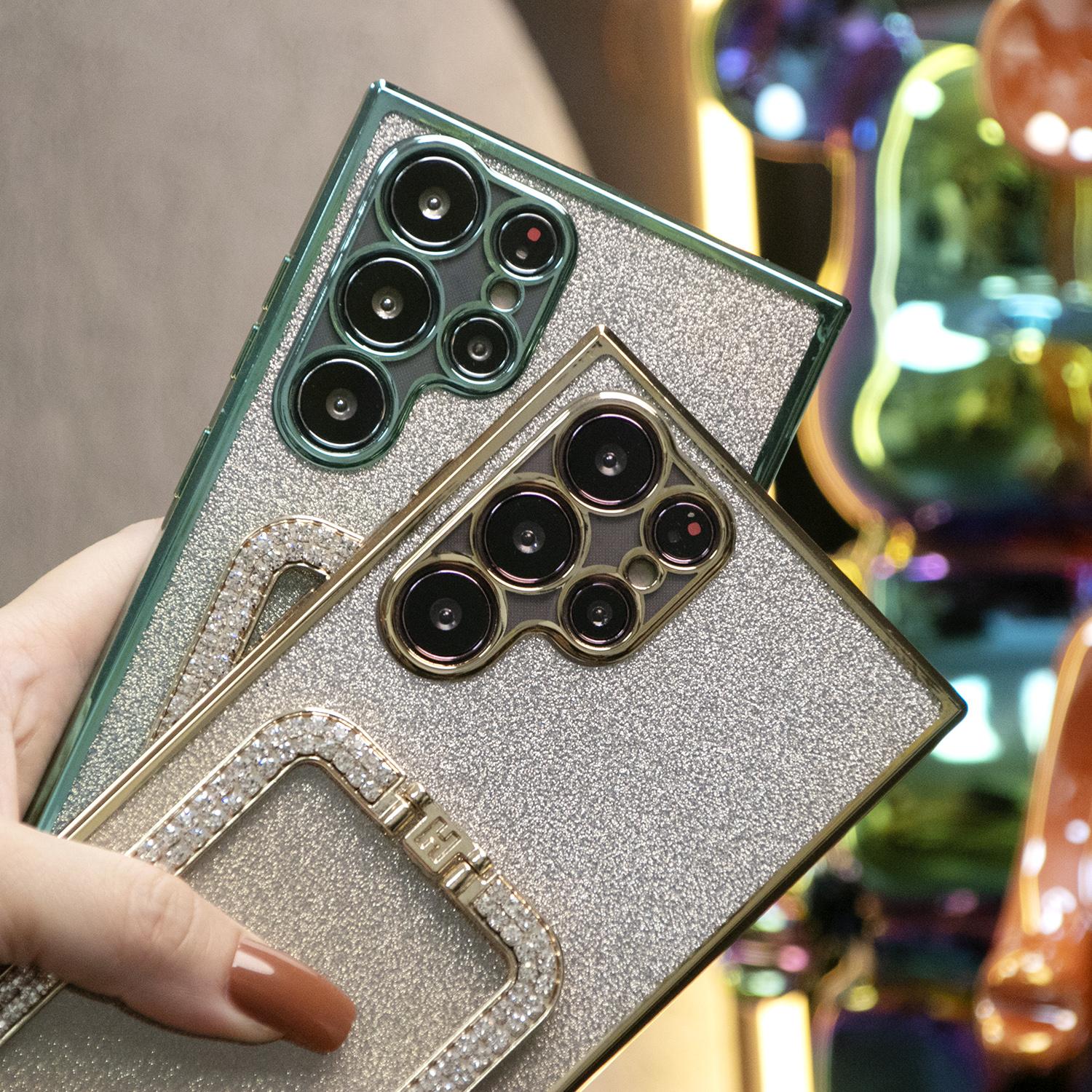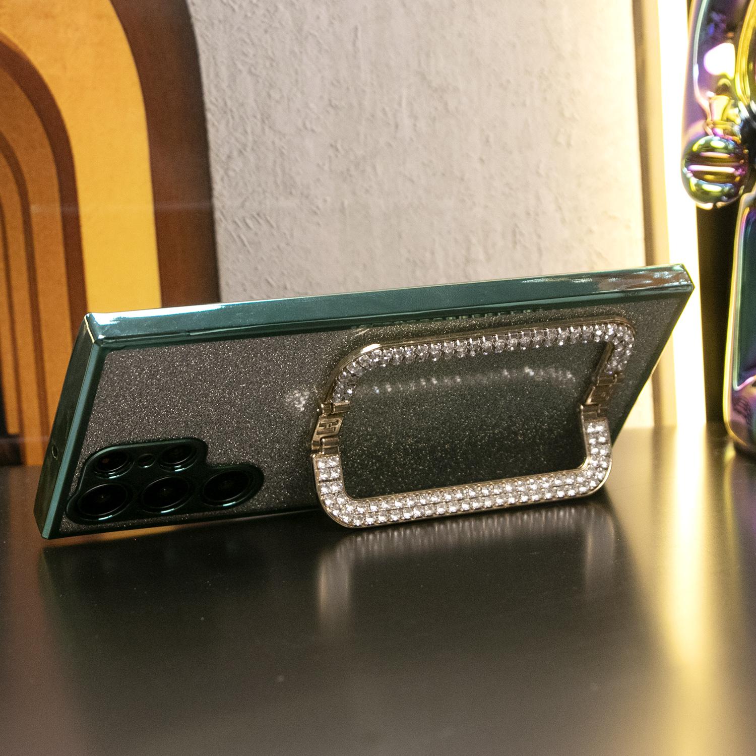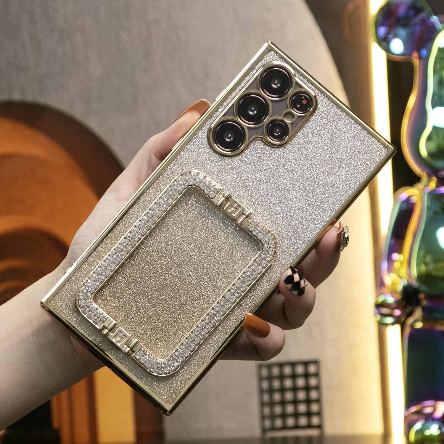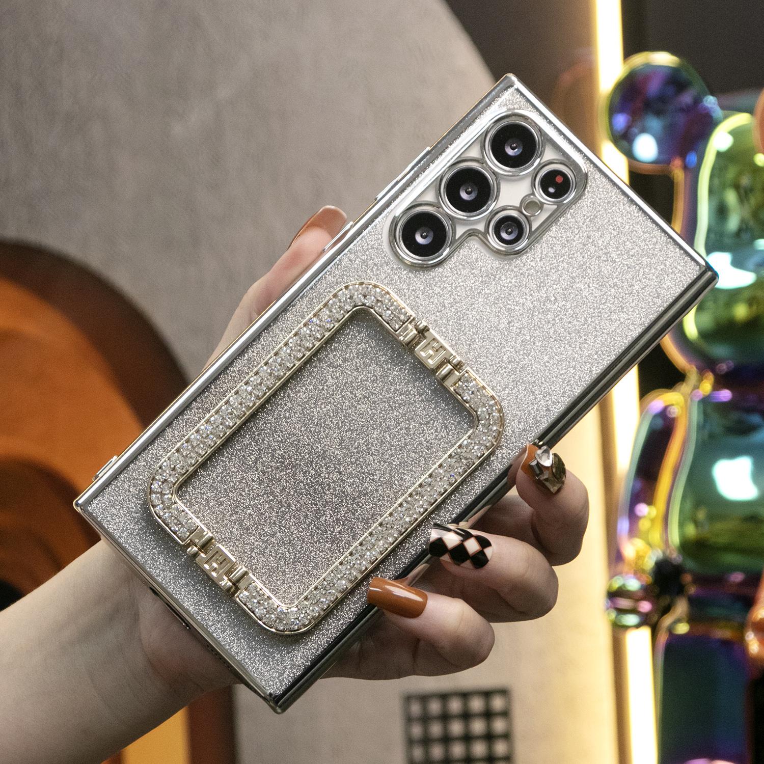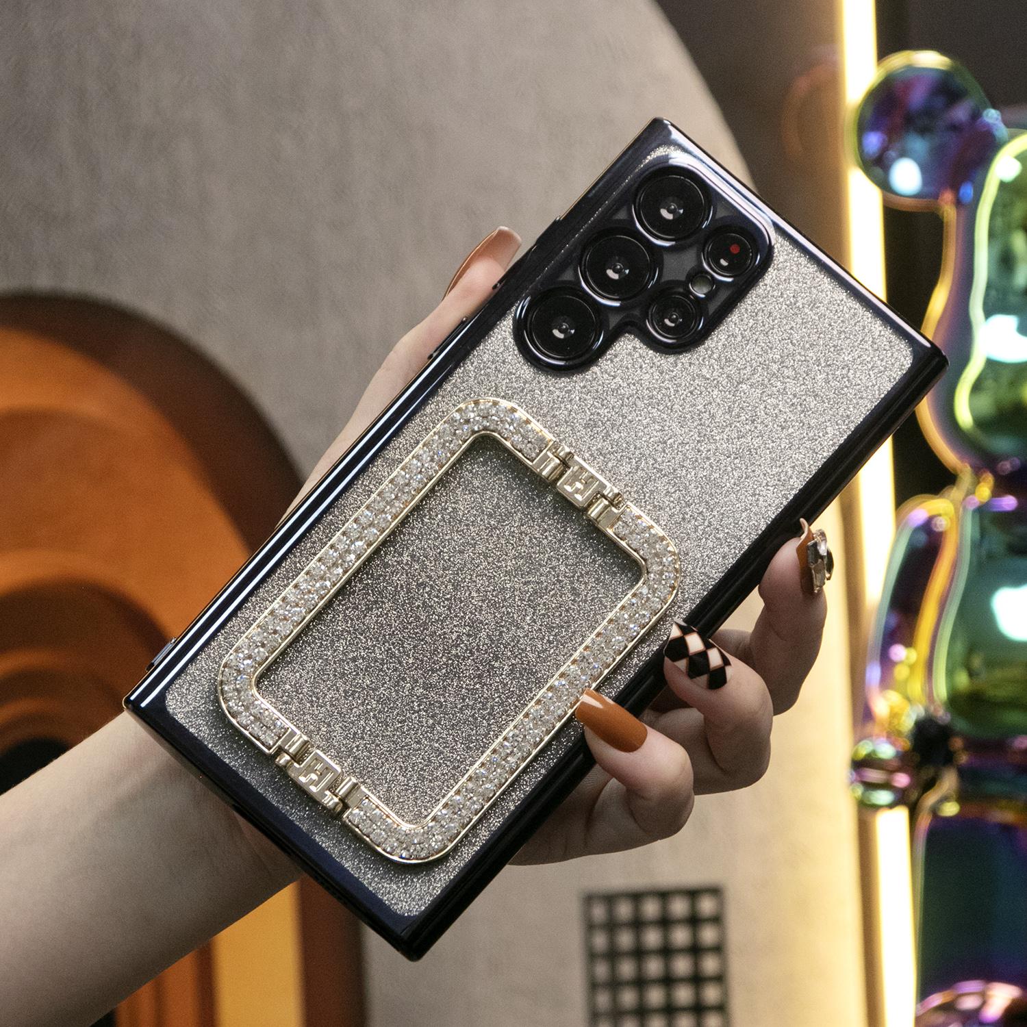 Luxury Diamond 3D Crystal Square Holder Glitter Clear Gradient TPU Plating Shockproof Soft Phone Case For Samsung S24Ultra S24FE S24 S23 S22 S21 FE Plus Ultra