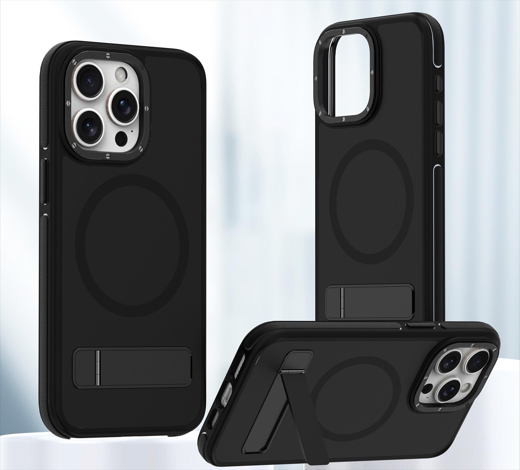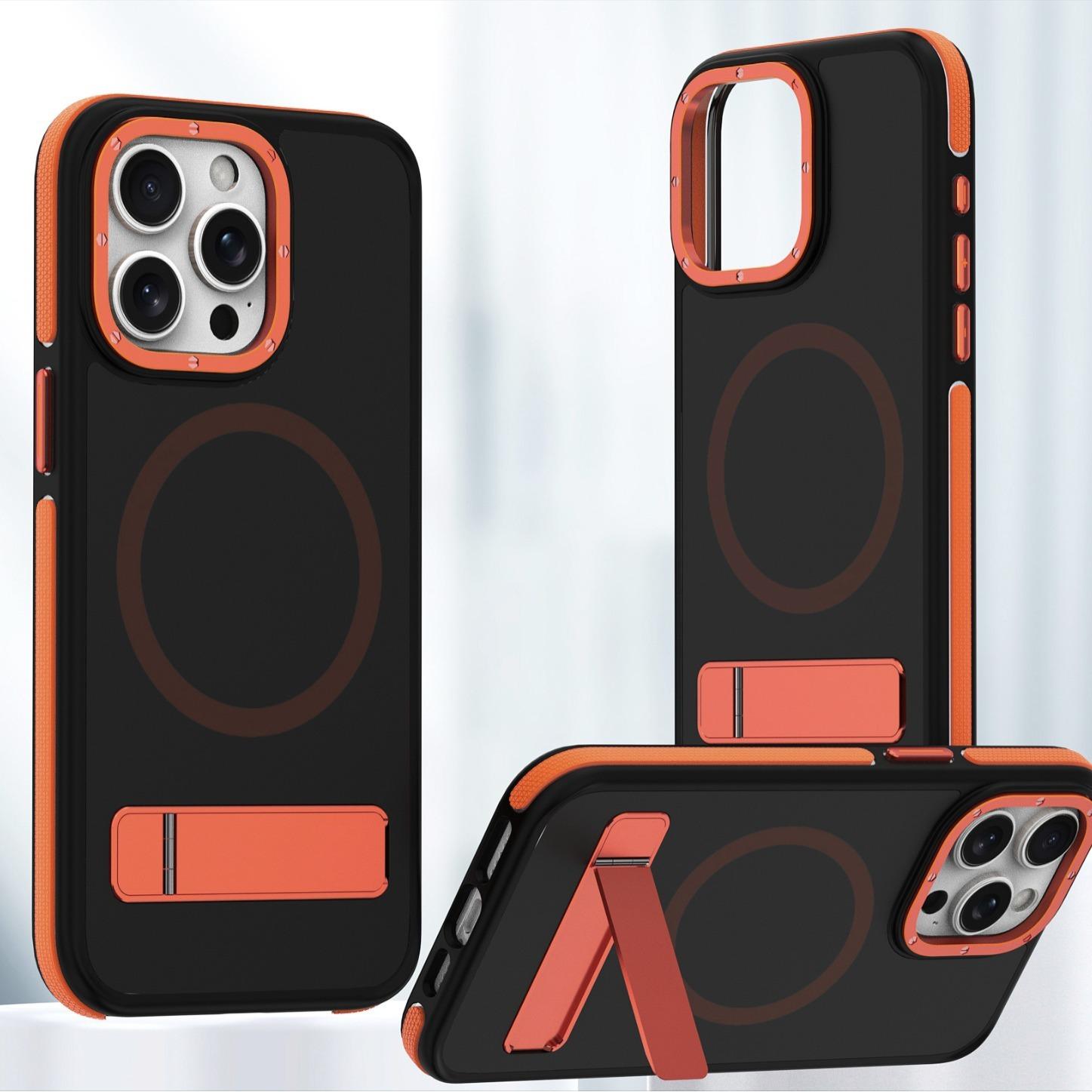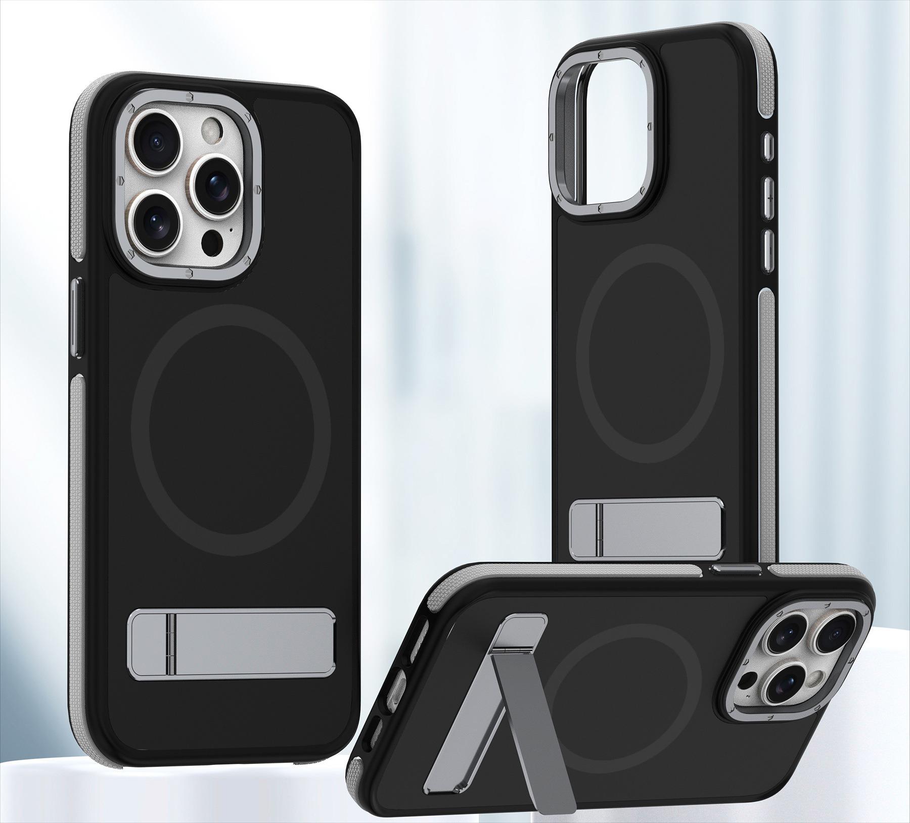 Matte Skin Friendly Strong Magnetic Line Bracket For Magsafe Phone Case For iPhone 16 15 14 Pro Max Plus Kickstand Metal Frame Acrylic Shockproof Bumper Hard Cover