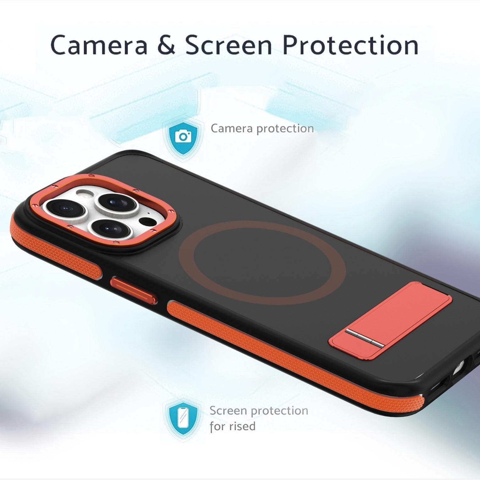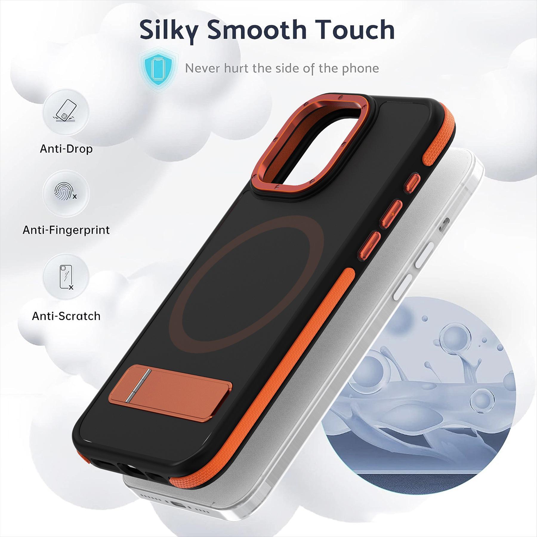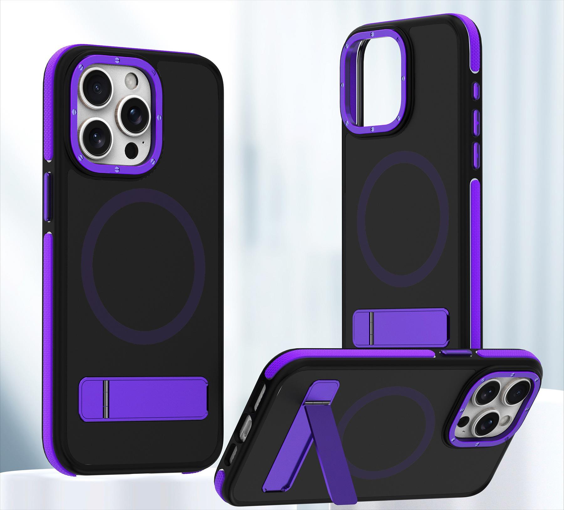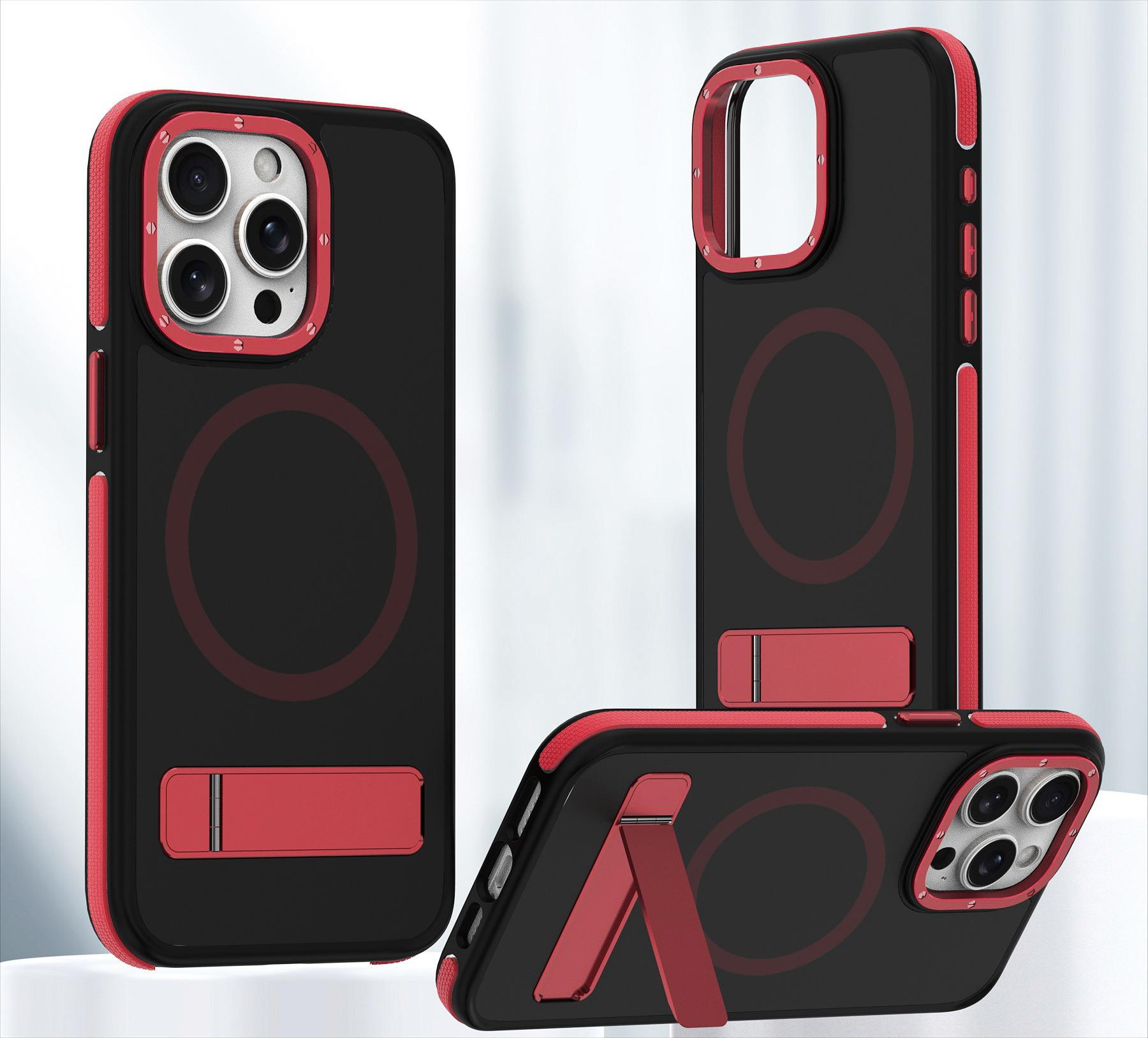 Matte Skin Friendly Strong Magnetic Line Bracket For Magsafe Phone Case For iPhone 16 15 14 Pro Max Plus Kickstand Metal Frame Acrylic Shockproof Bumper Hard Cover