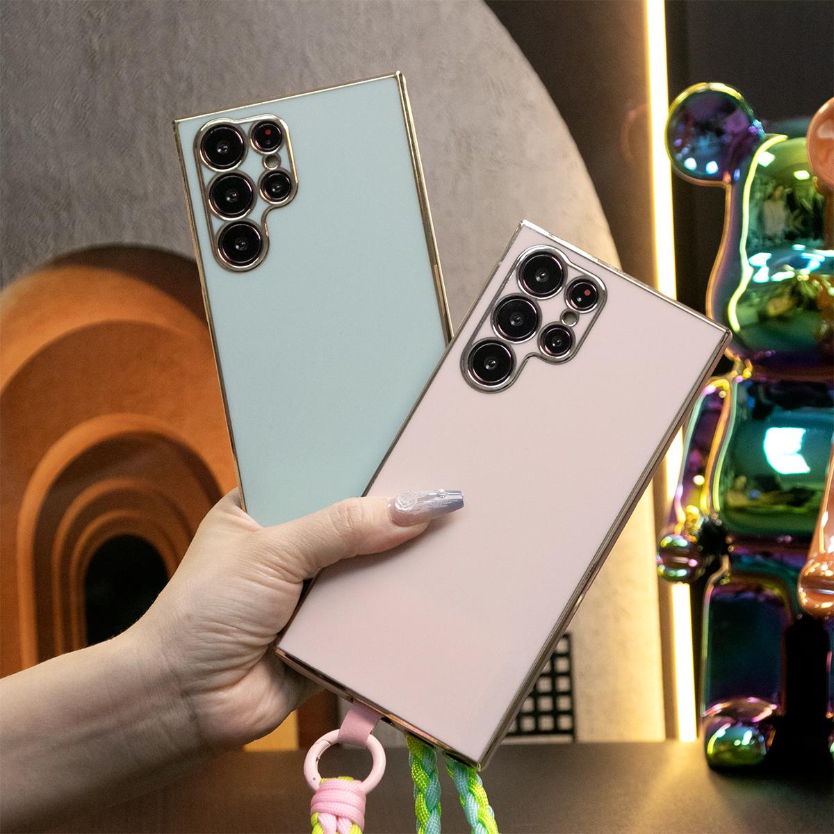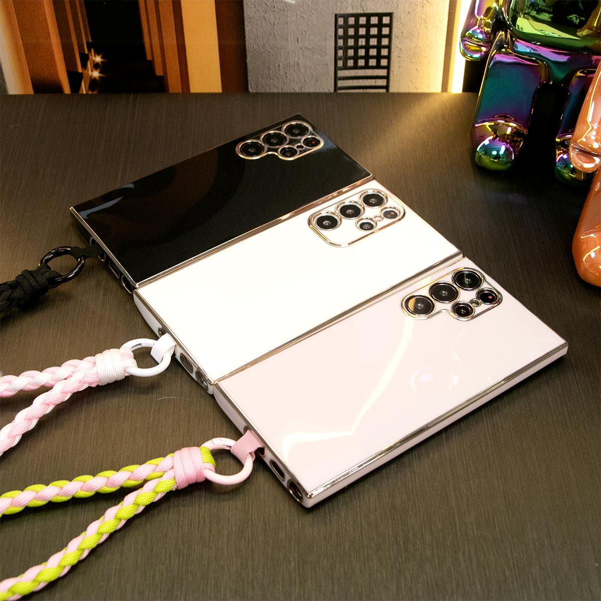 Plating Phone Case With Woven Wristband For Samsung S24 S23 S22 S21 S20 FE Plus Ultra Note 20