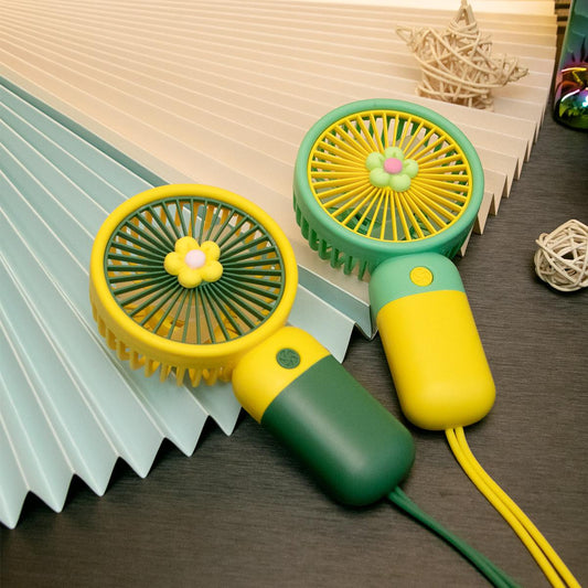 Flower Color Block Portable Fan - USB Rechargeable, Handheld, Compact & Quiet, Perfect for Summer Cooling On-the-Go