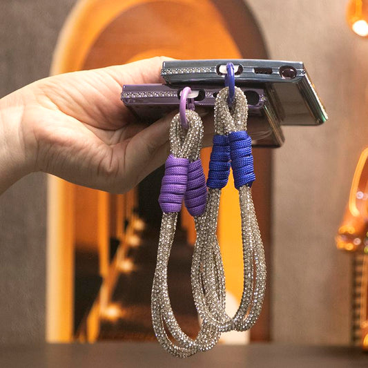 Fashion Colorful Glitter Phone Lanyard Wrist Woven Rhinestone Strap Multifunctional Diamond Fabric Wristband Metal Accessories Color Hanging Bracelet Anti-lost Lanyards