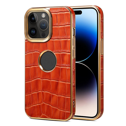 Leather Case For iPhone 15 Pro Max 12 13 14 Plus, Crocodile Pattern Premium Cowhide Leather Plating Slim Fit Phone Case