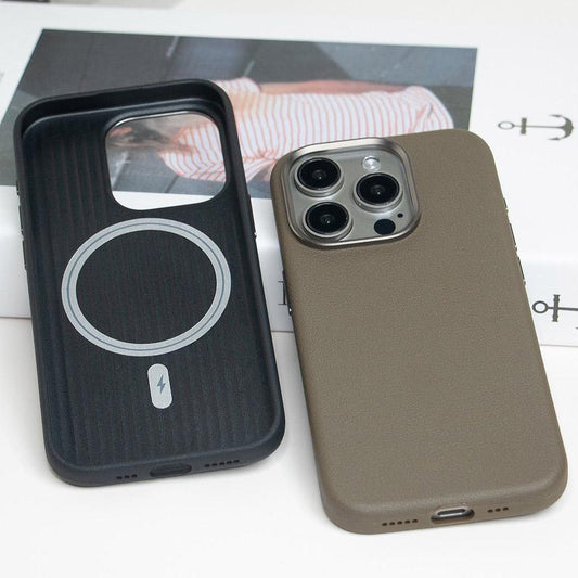 High-Grade Elegant Leather Strong Magnetic Business Phone Case for iPhone 15 15Plus 15Pro 15ProMax, Compatible with Magsafe Fingerprint Proof Protective Phone Case