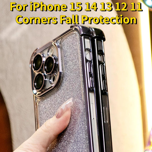 Glitter Clear Four Corners Anti Fall Transparent Plating Mobile Phone Case For iPhone 16ProMax 16 15 14 Plus 13 Pro Max Full Fall Protection