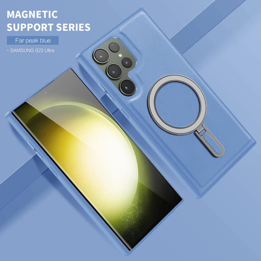 Magnetic For Samsung S24 S23 Plus Ultra Leather Phone Case,Built-in Invisible Stand [Compatible with Magsafe]Shock Absorption Bumper Design Protective Slim Kickstand Phone Cover Compatible With Samsung S24 S23 Plus Ultra