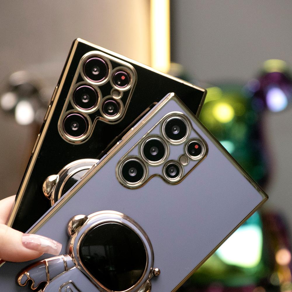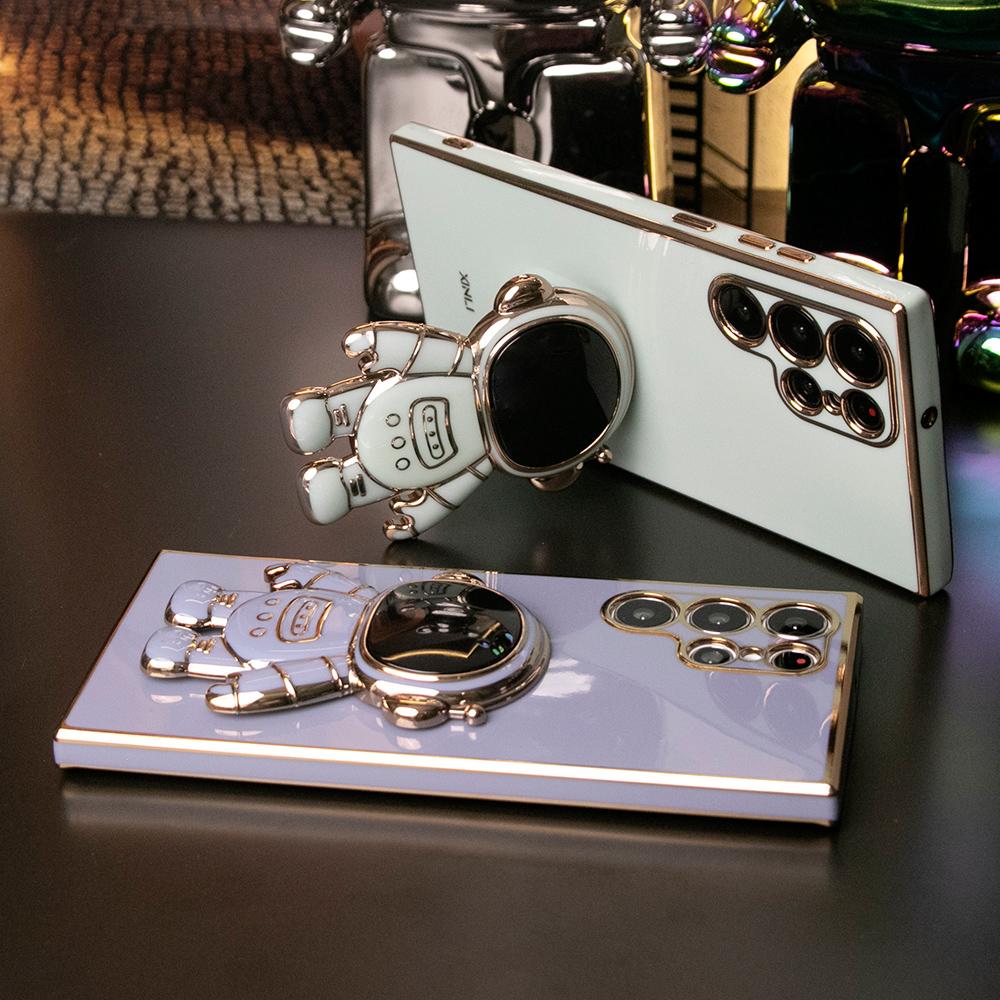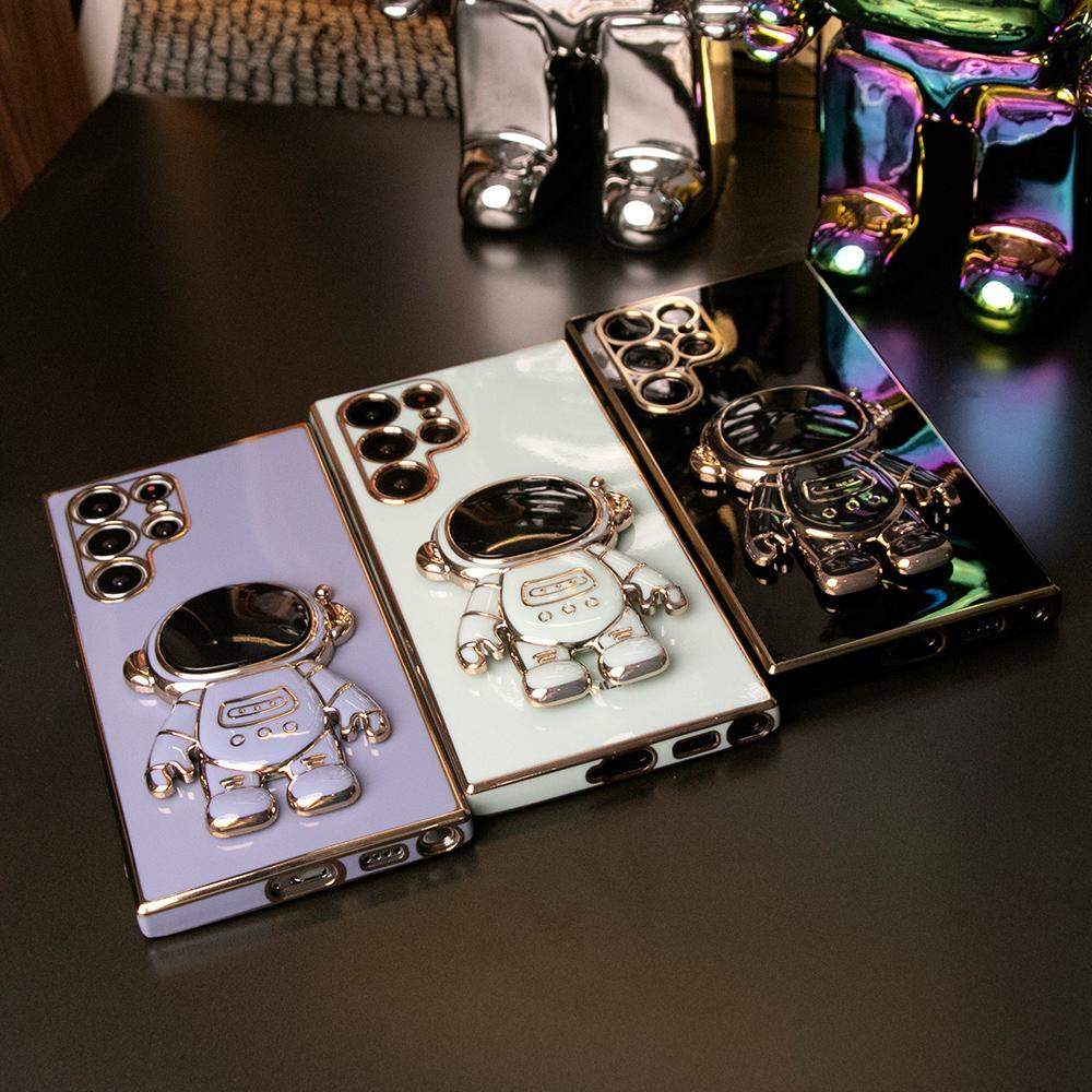 Astronaut Plating Kickstand Soft Phone Case For Samsung Galaxy S24 S23 S22 S21 Note 20 Ultra