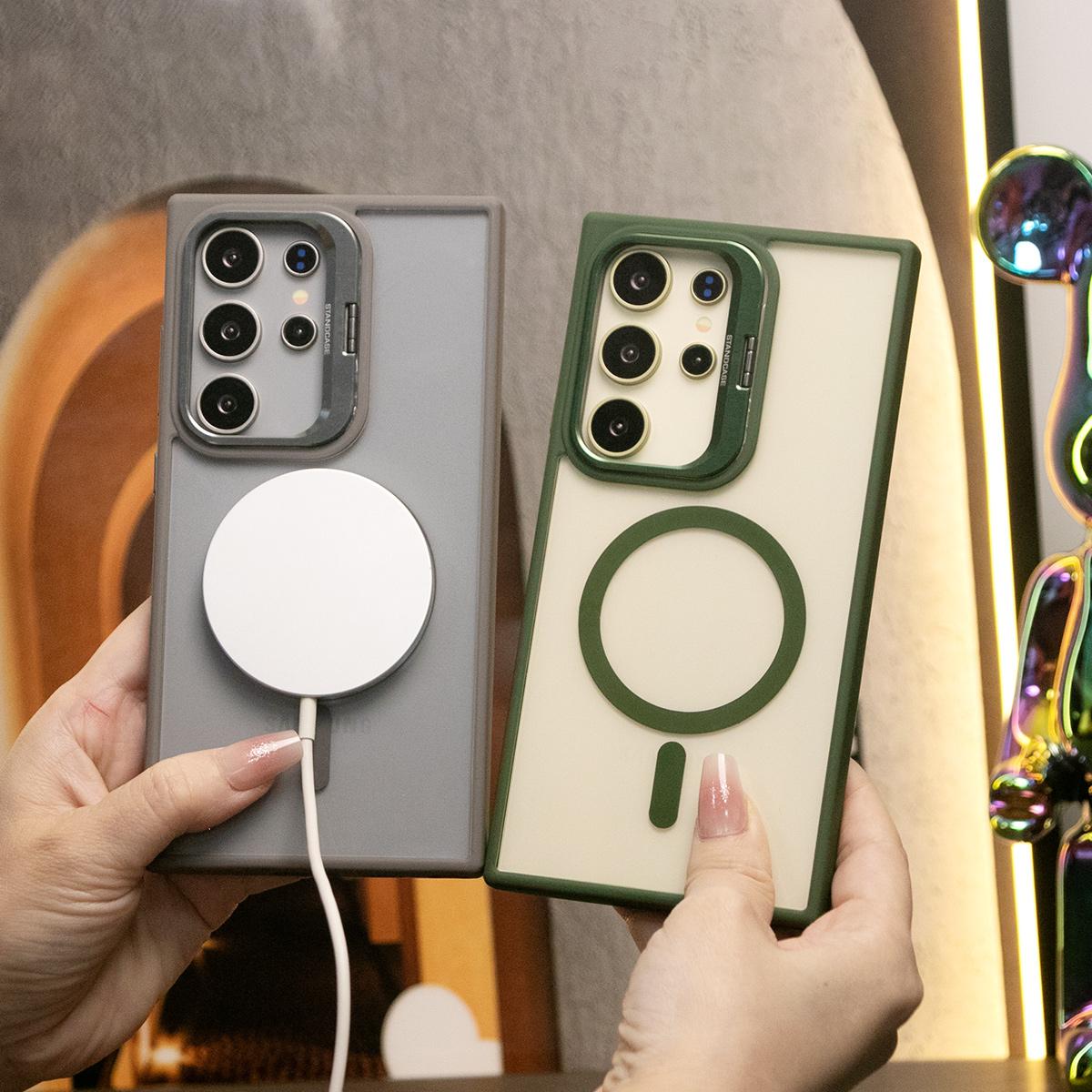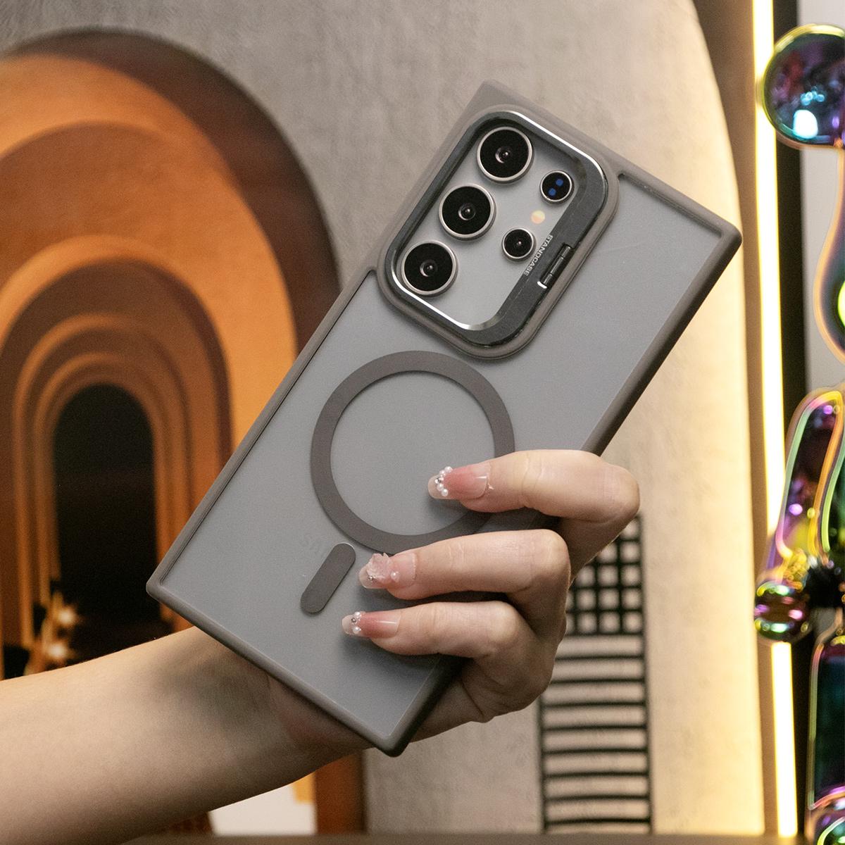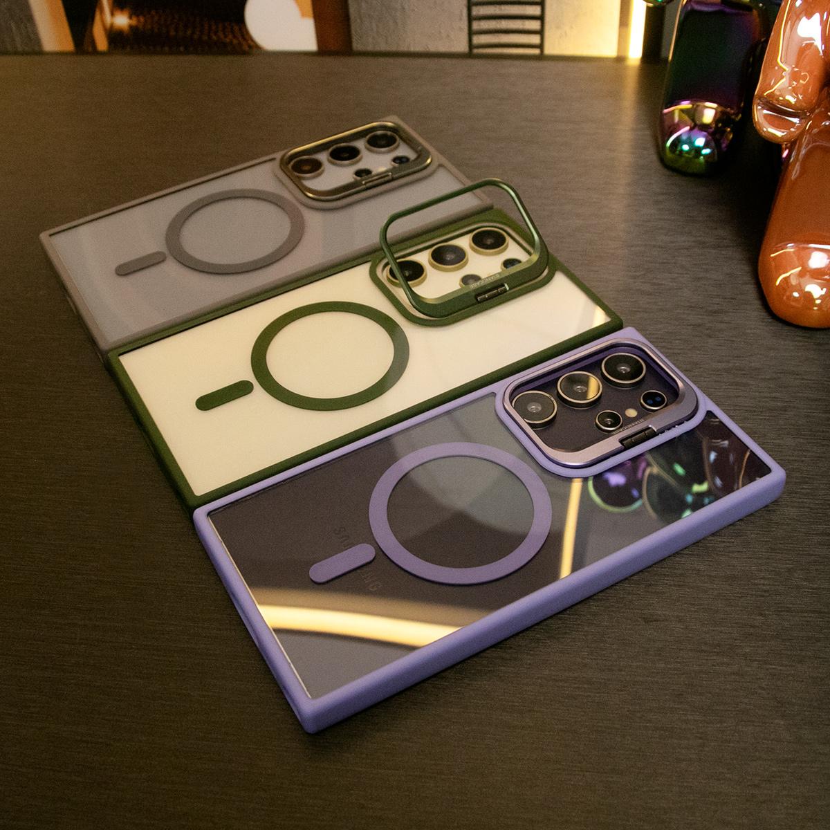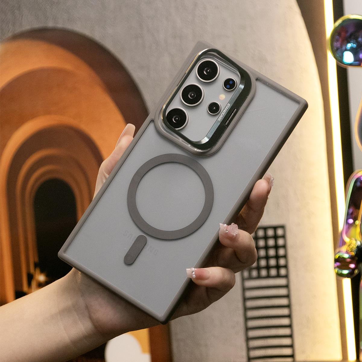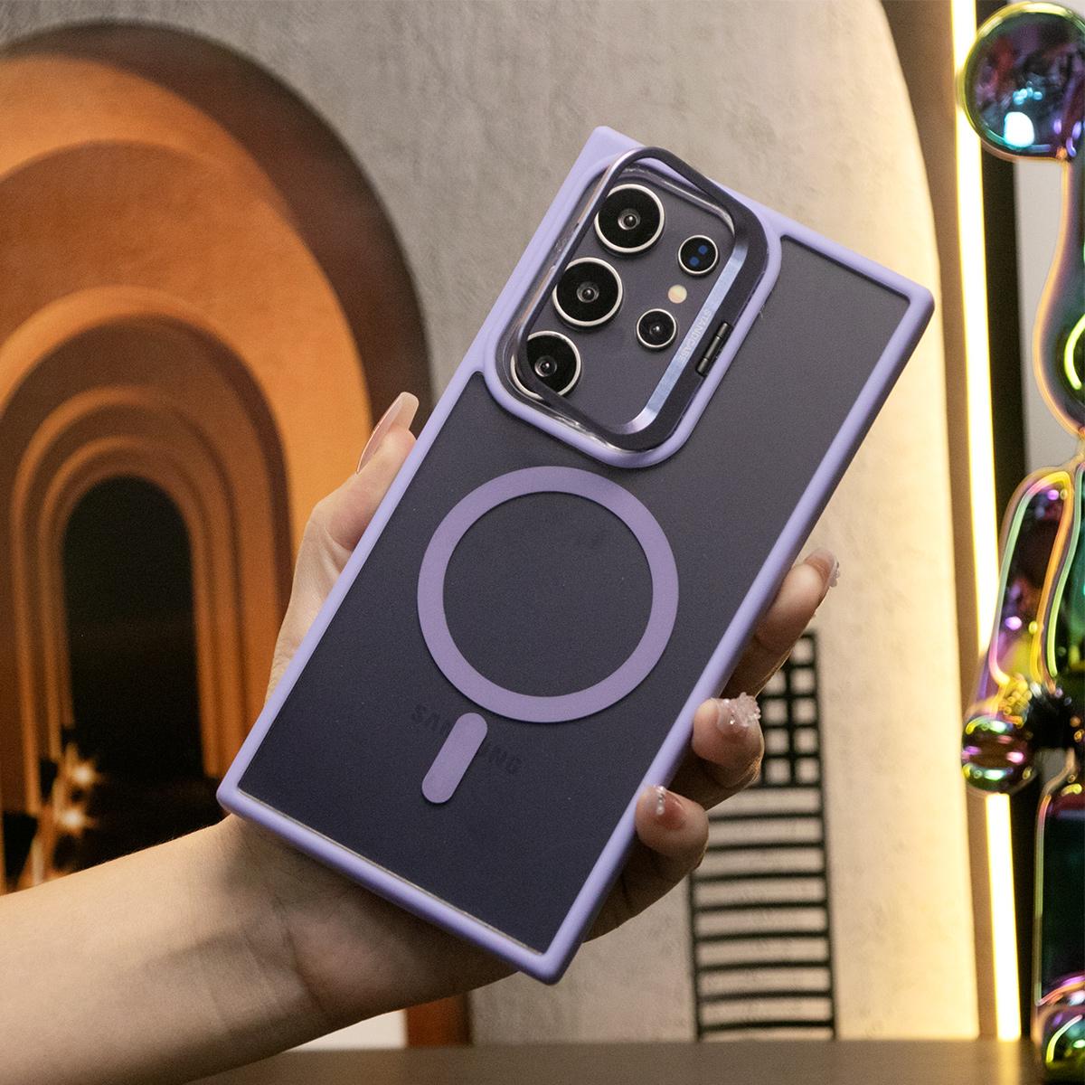 Clear Magnetic Metal Lens Holder Using Acrylic Material Phone Case For Samsung S24 S23 S22 FE Plus Ultra Not Yellowing Cover Case