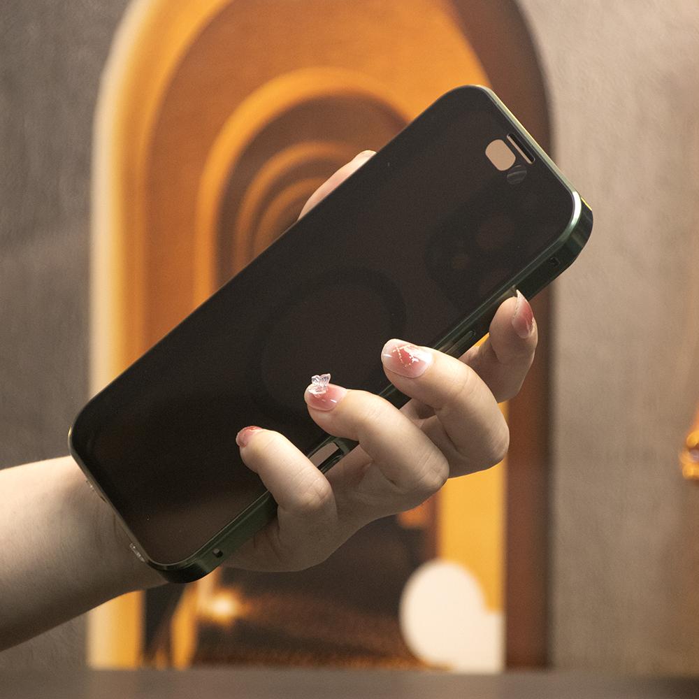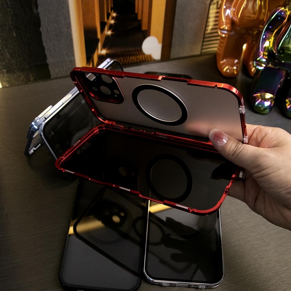 Double Sided Anti-peep Front Glass Matte Back Cover Aluminium Alloy For Magsafe Full Cover 360 Privacy Magnetic Ring Metal Case For iPhone 16ProMax 16 15 14 13 12 Pro Max Glass Full Cover