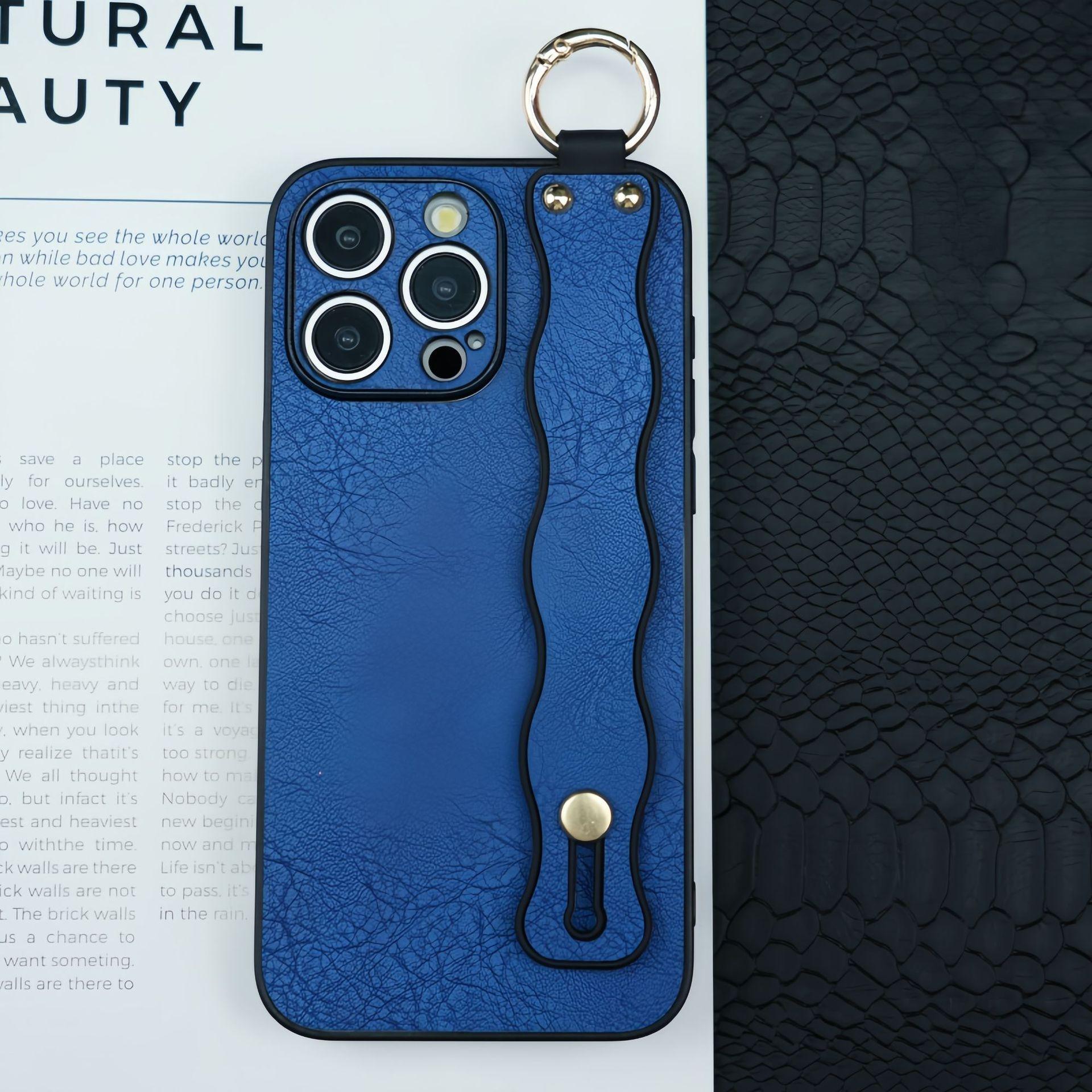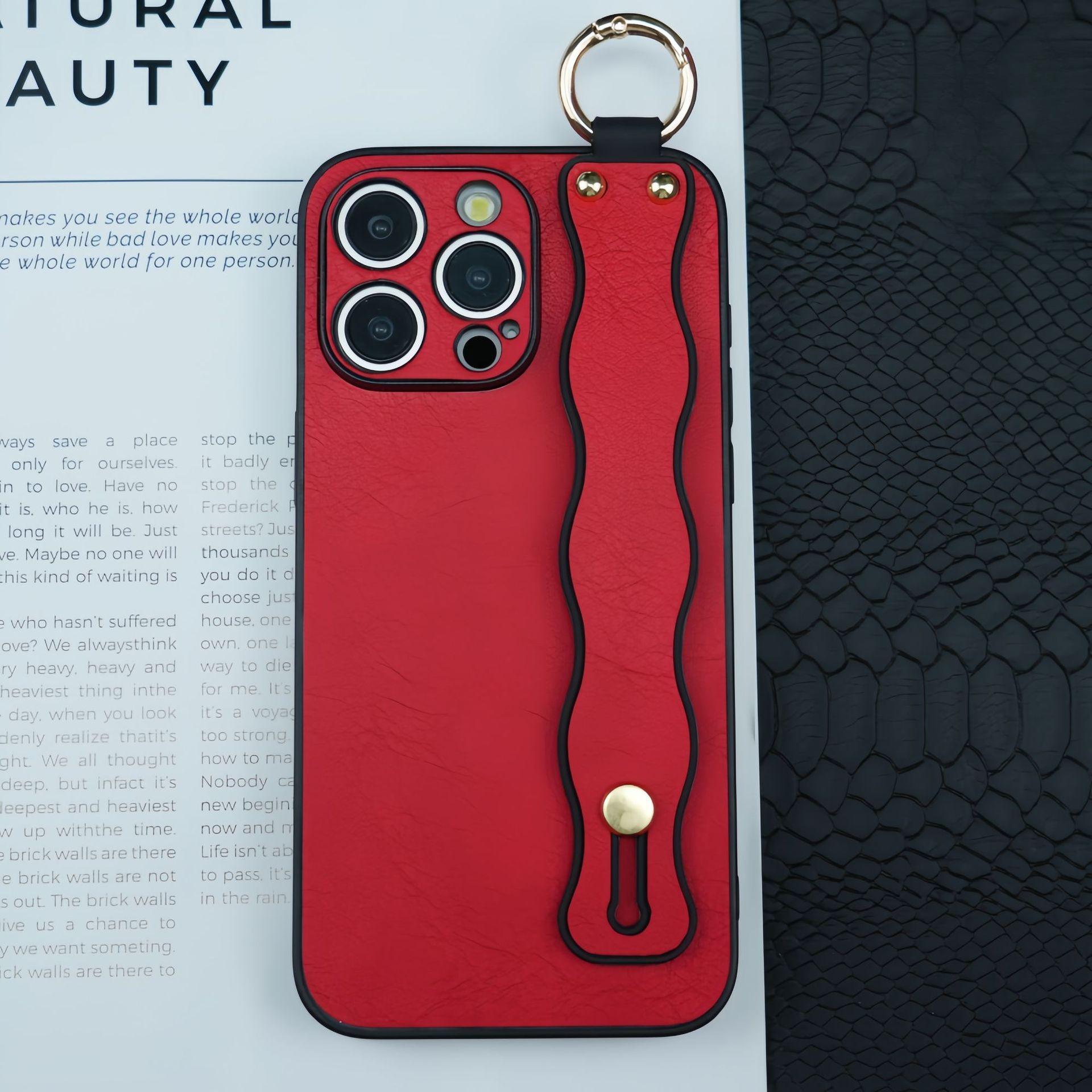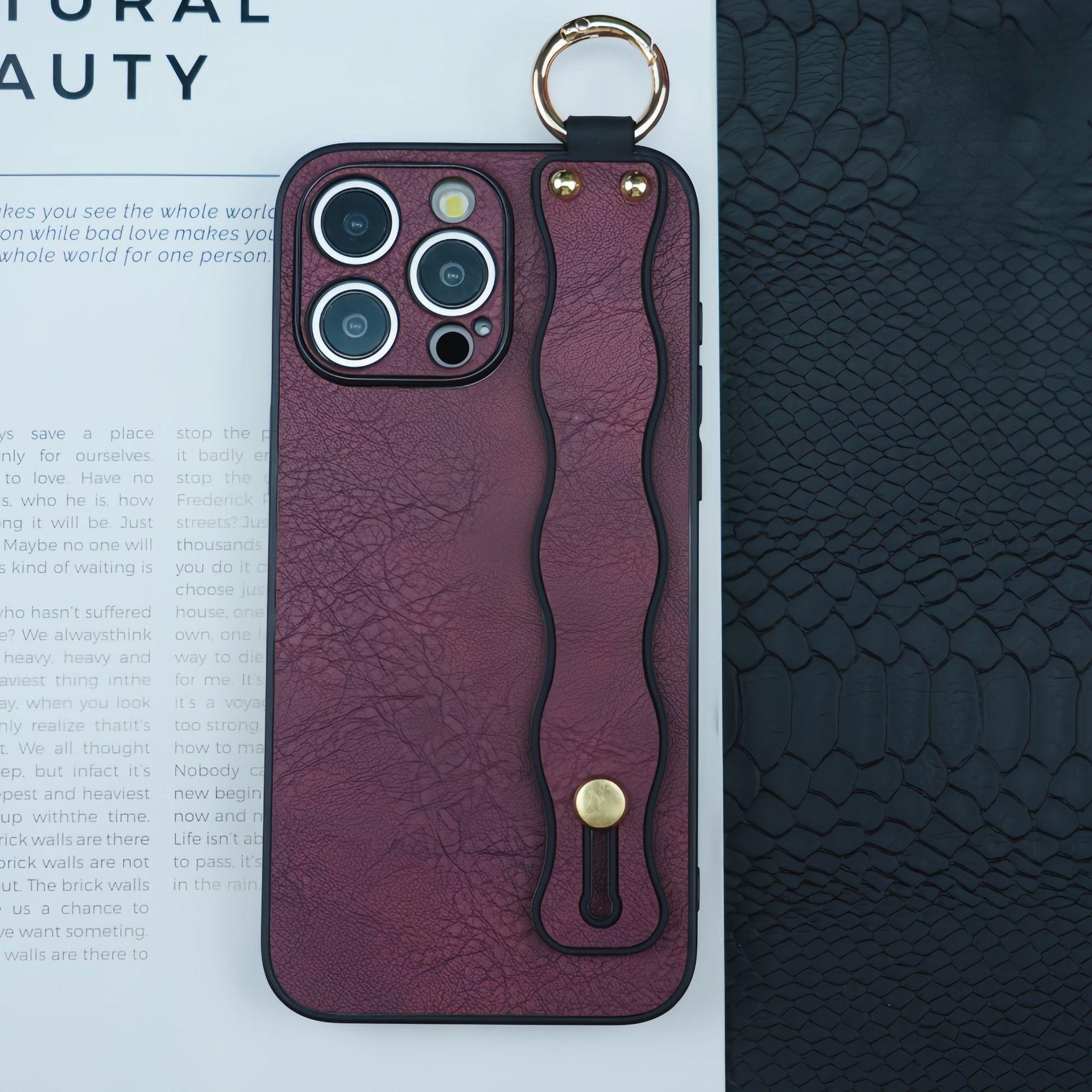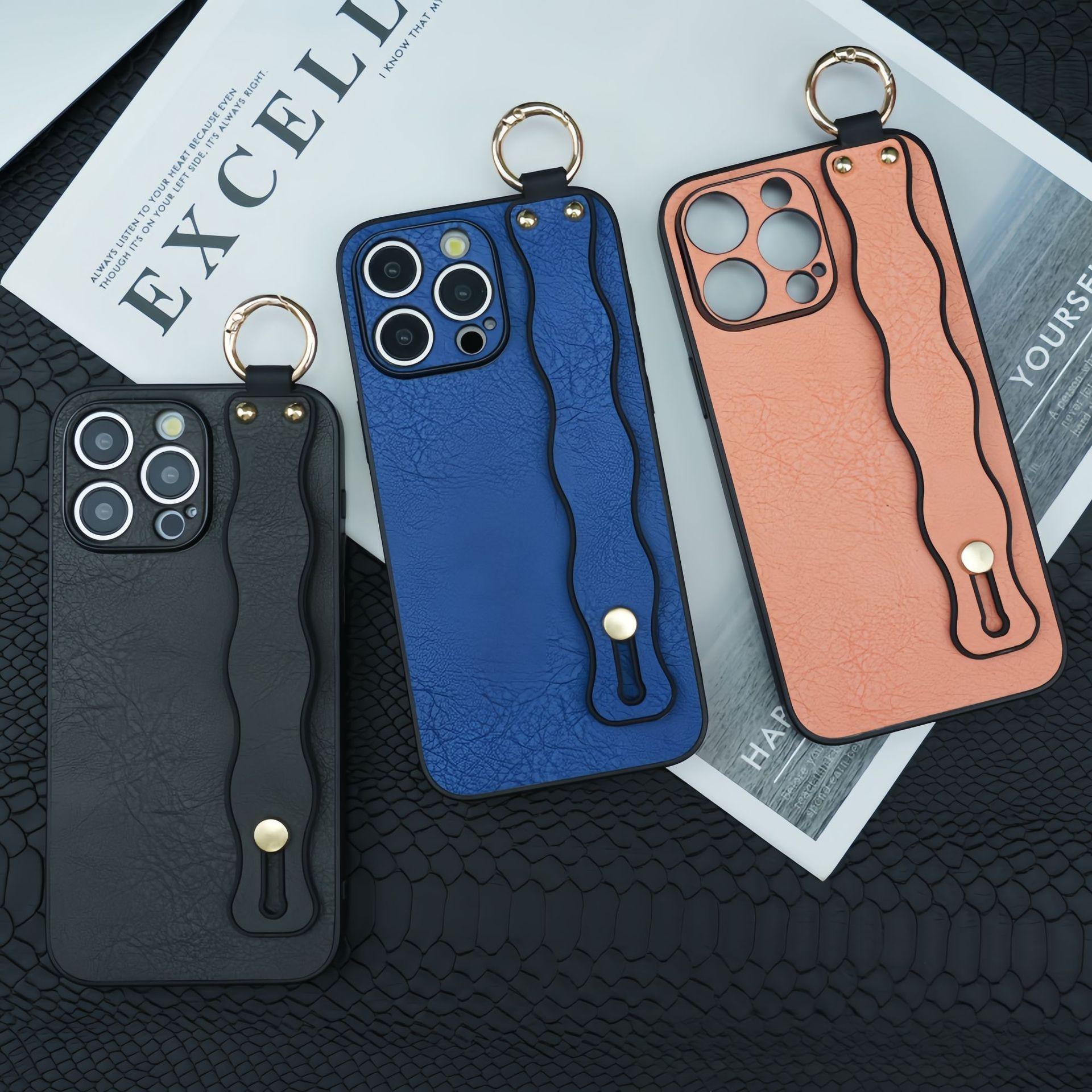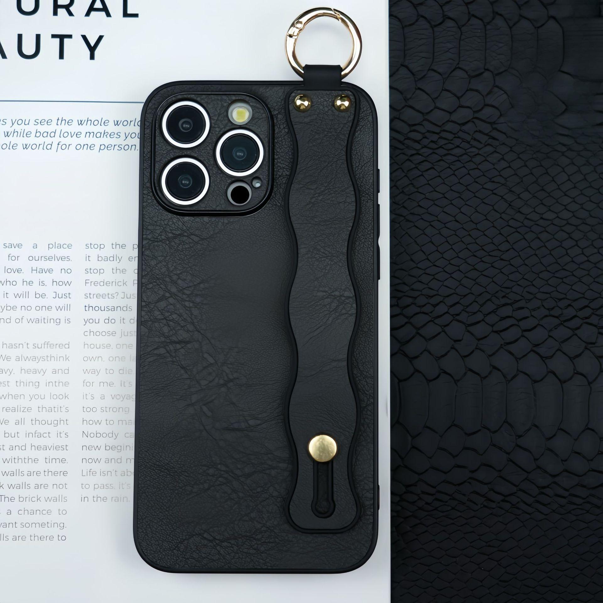 For iPhone 16ProMax 16 15 14 13 12 Case With Wave Wristband, Luxury Durable Faux Leather Kickstand Shockproof Phone Case