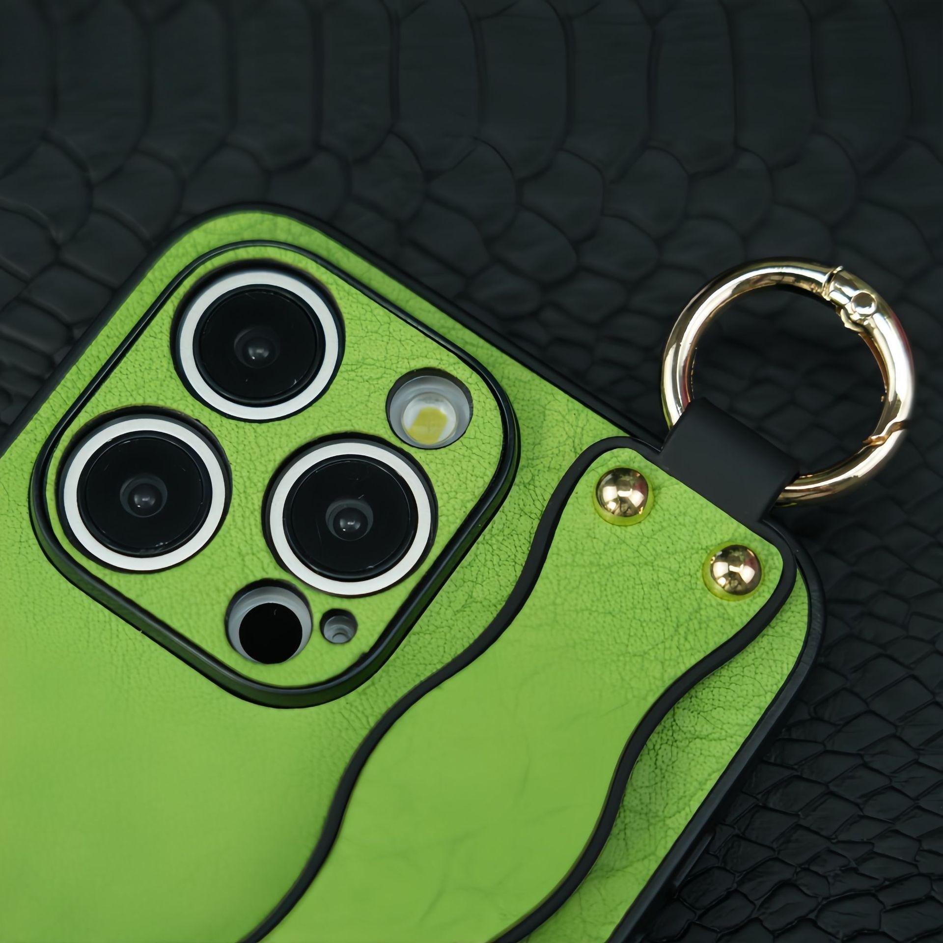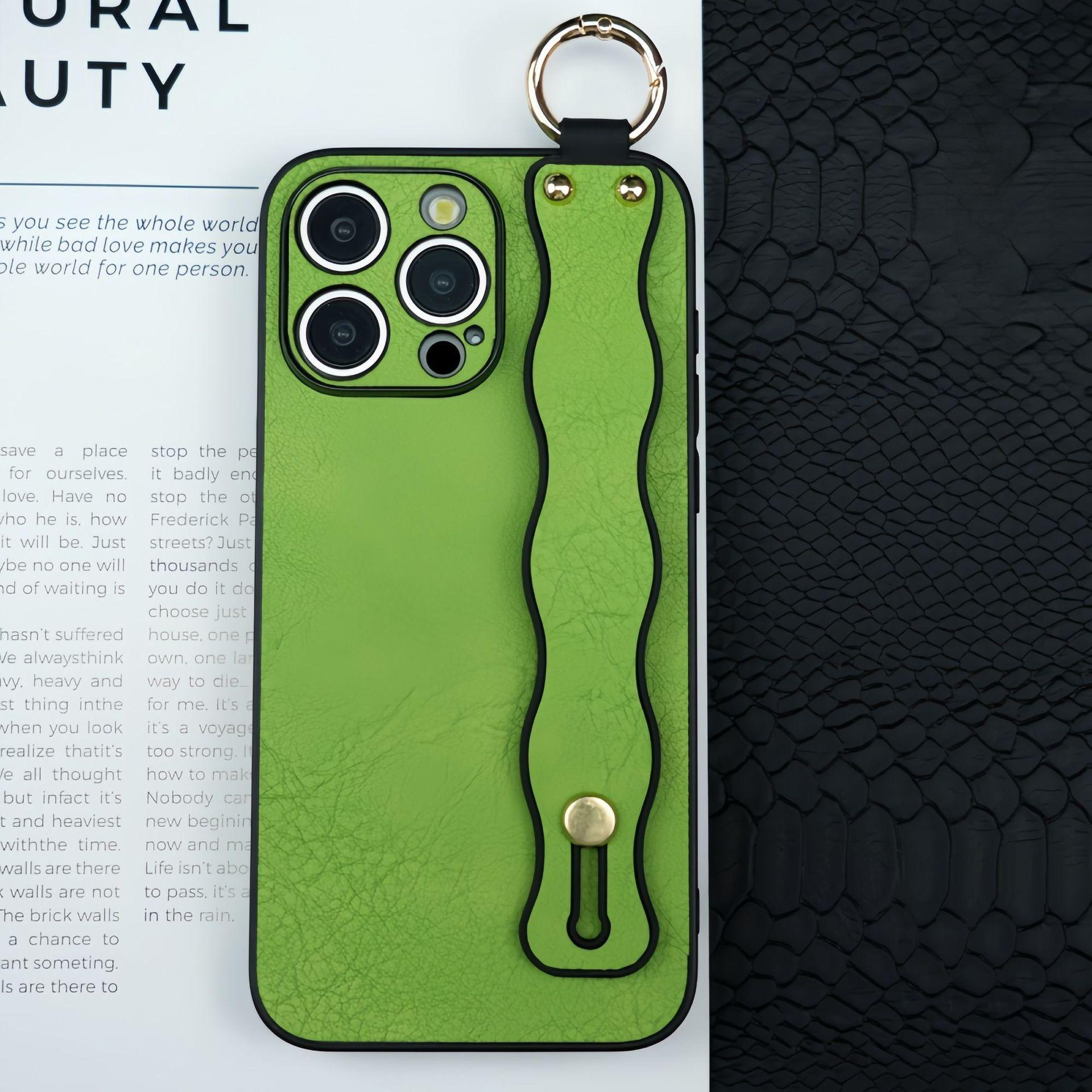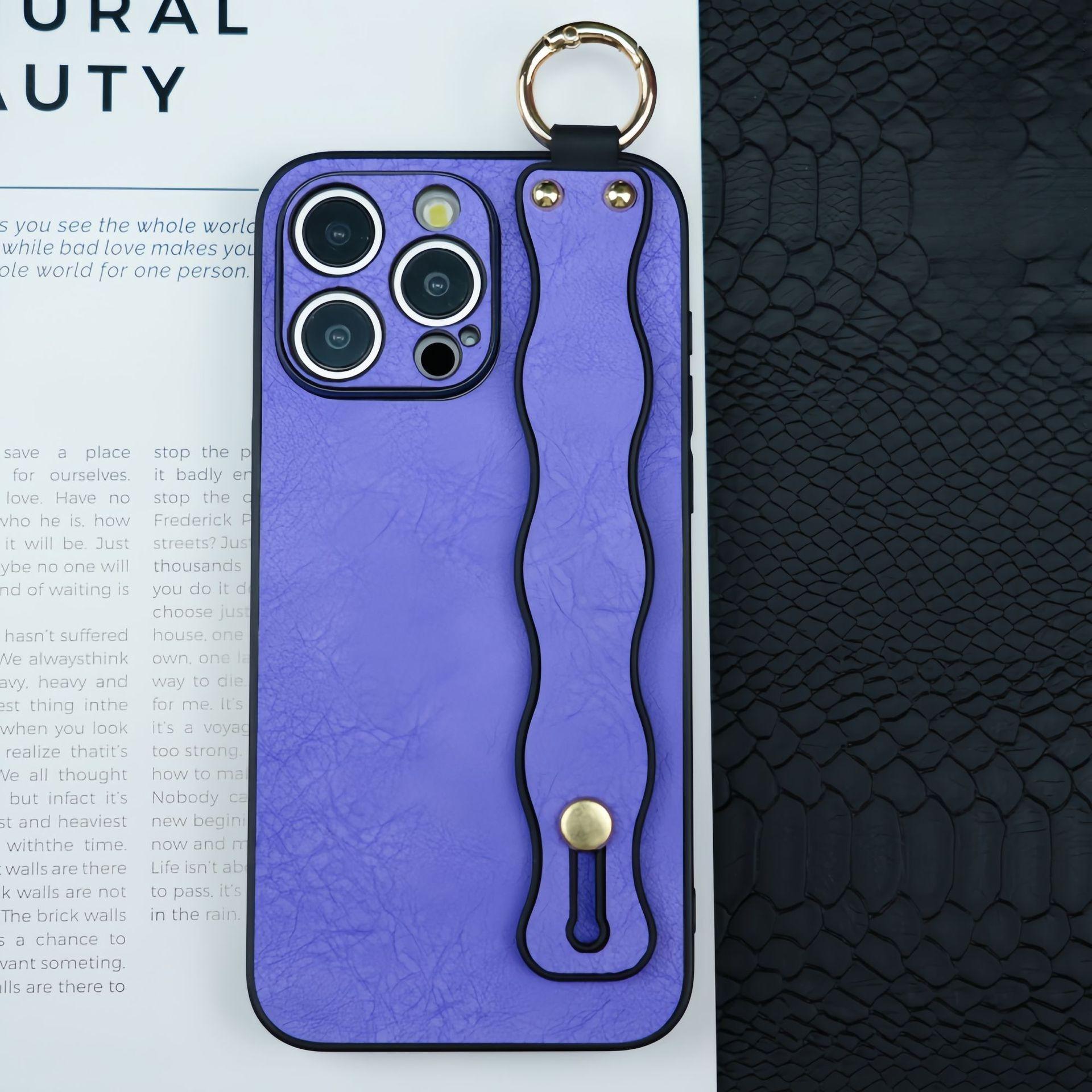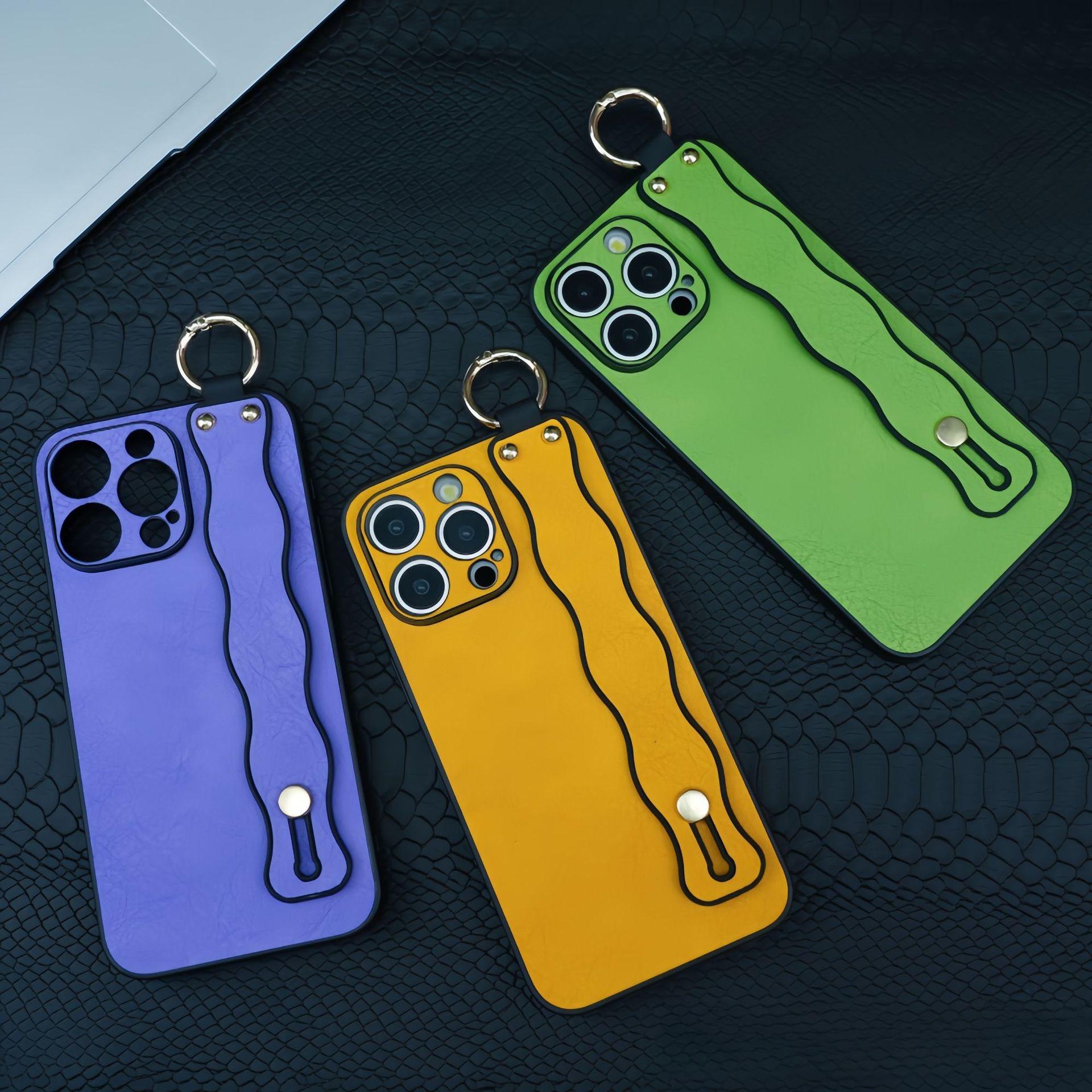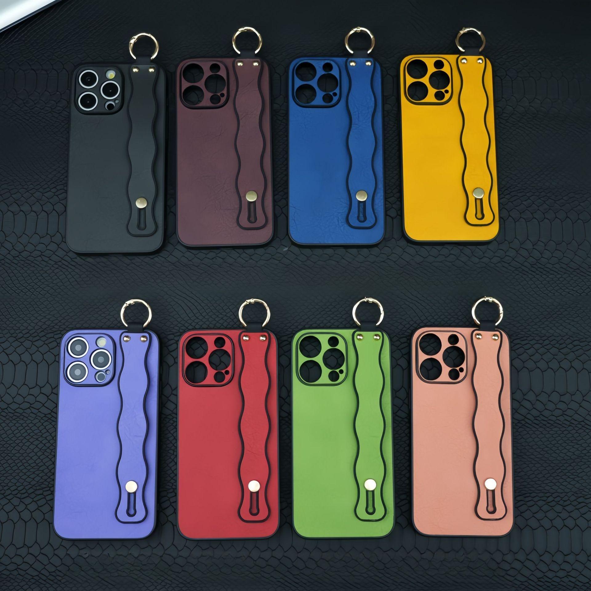 For iPhone 16ProMax 16 15 14 13 12 Case With Wave Wristband, Luxury Durable Faux Leather Kickstand Shockproof Phone Case