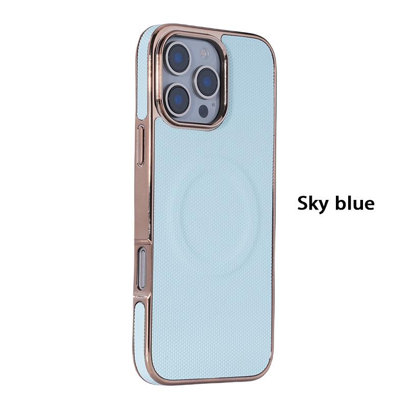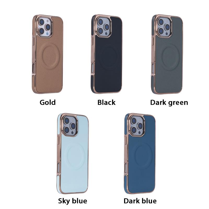 For iPhone 16ProMax 16E 16 15 14 13 12 11 Pro Max Plus Phone Case, Plating Antislip Matte Luxury Leather Emboss Strong Magnetic Slim Protection Shockproof Hard Full Cover