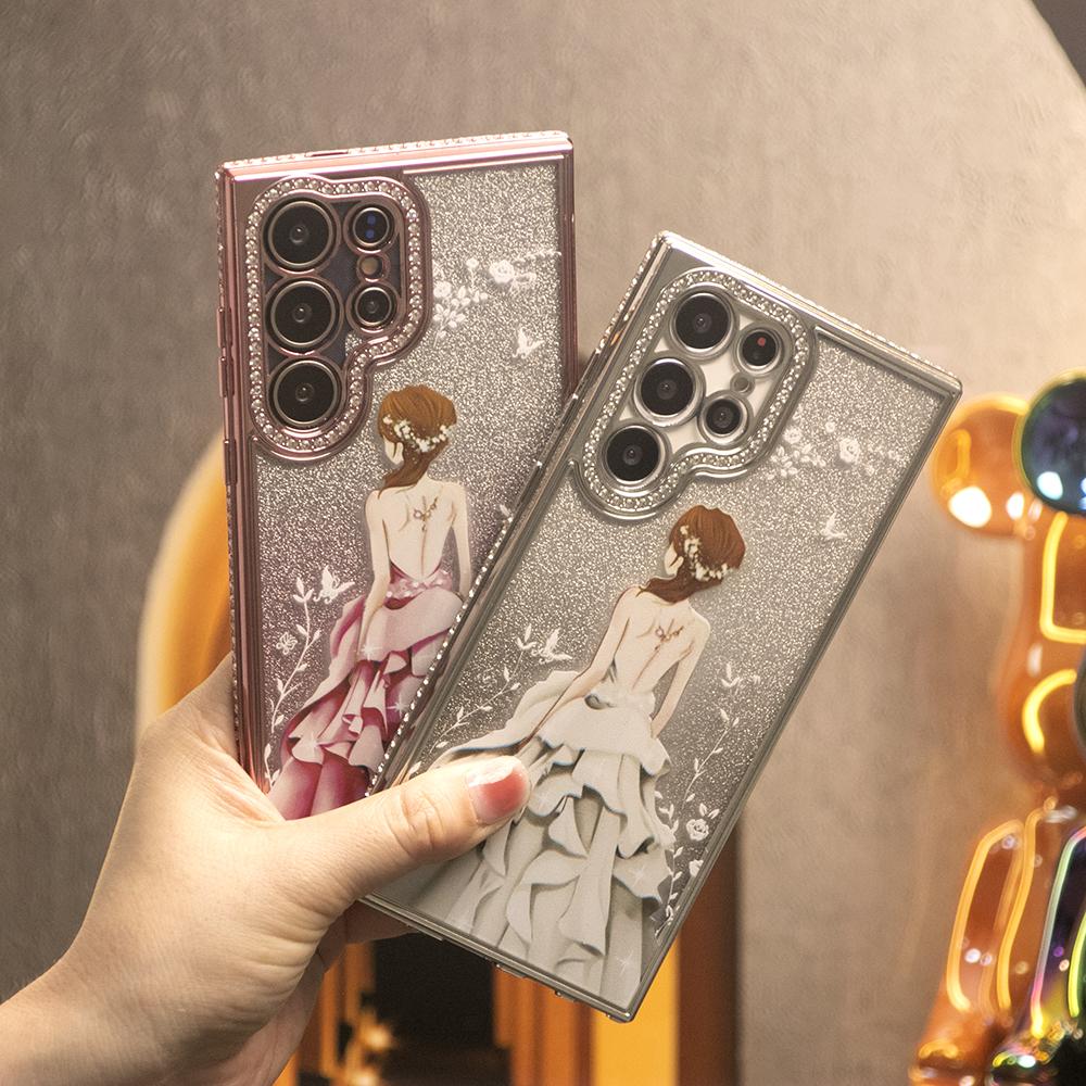 For Samsung S25Ultra S25+ S25 S24 S23 S22 Plus Ultra Case, Gradient Rhinestone Goddess Glitter Luxury Elegant Plating Case Camera Protection Shockproof Soft Full Cover