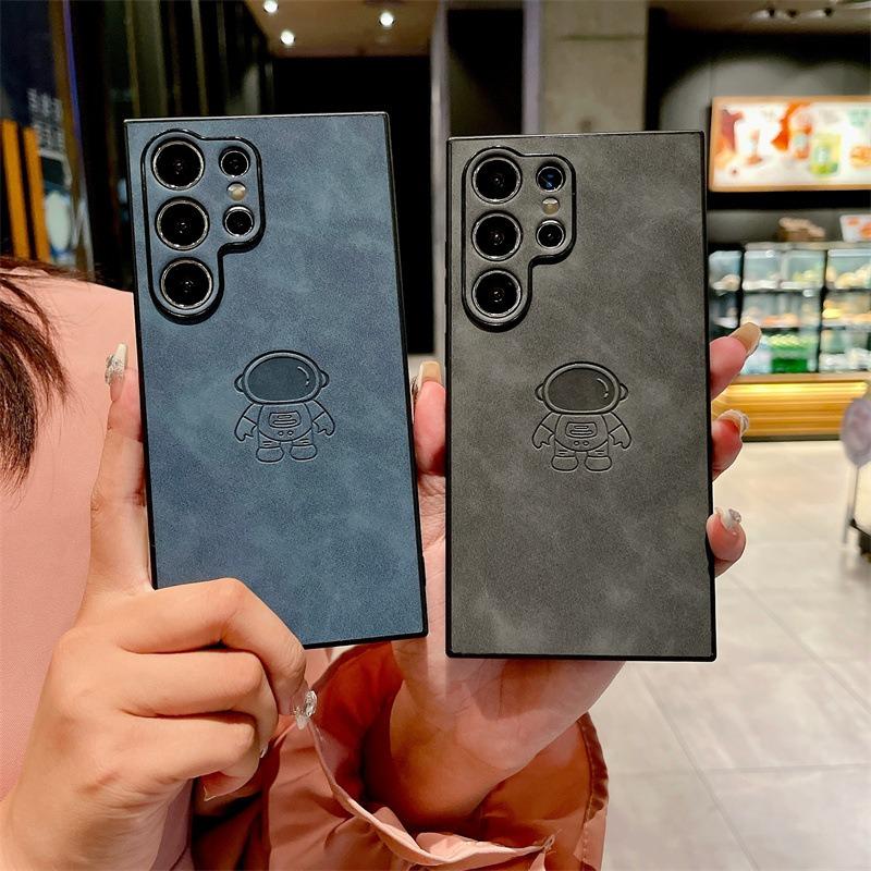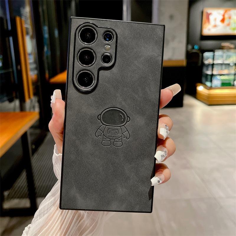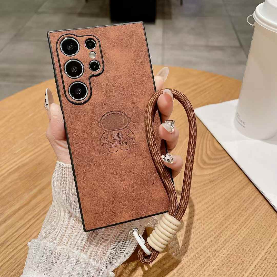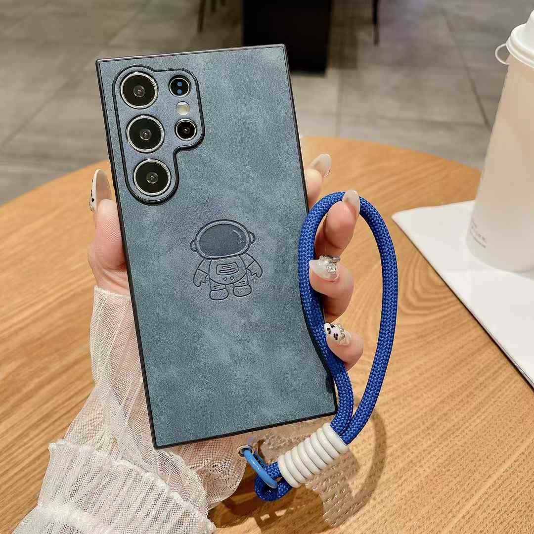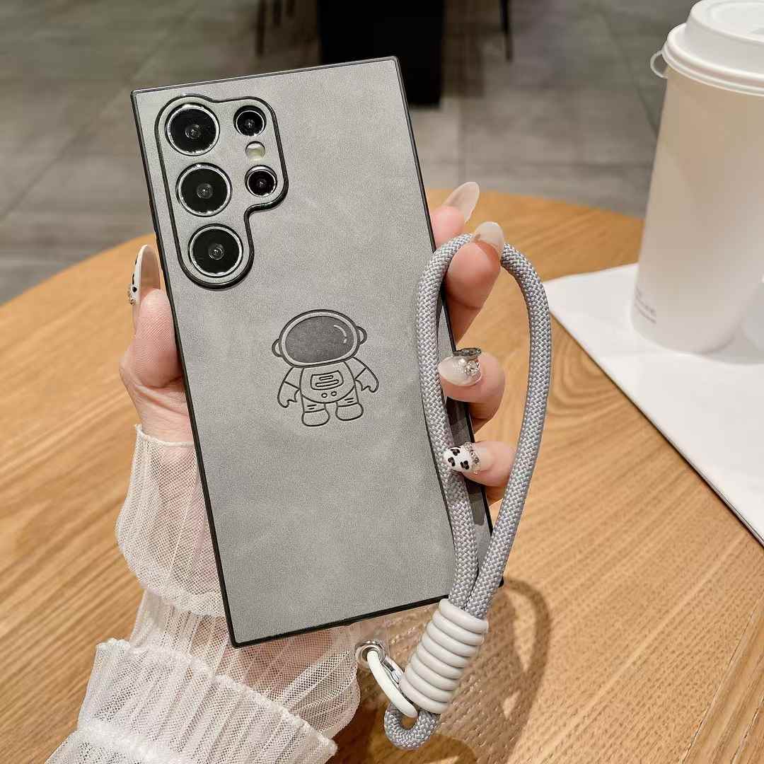 For Samsung S25Ultra S25Edge S24 S23 S22 S21 Note20 A16 A26 A36 A55 A56 Case With Weave Wristband, Astronaut Pattern Matte Suede Leather Shockproof Hard Phone Case