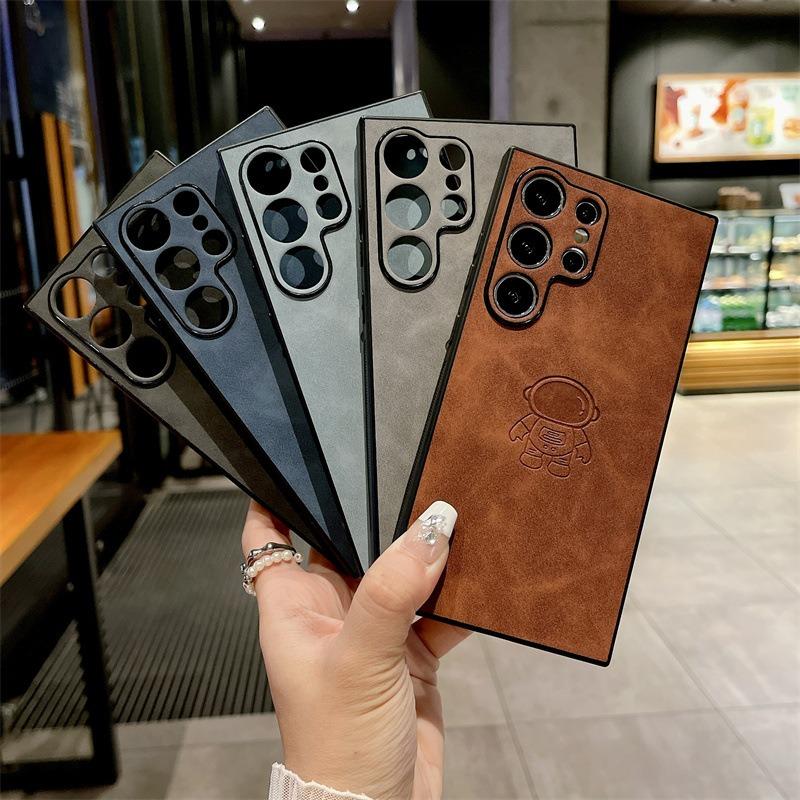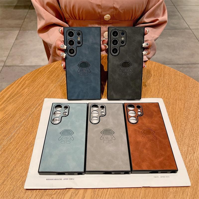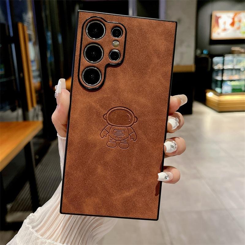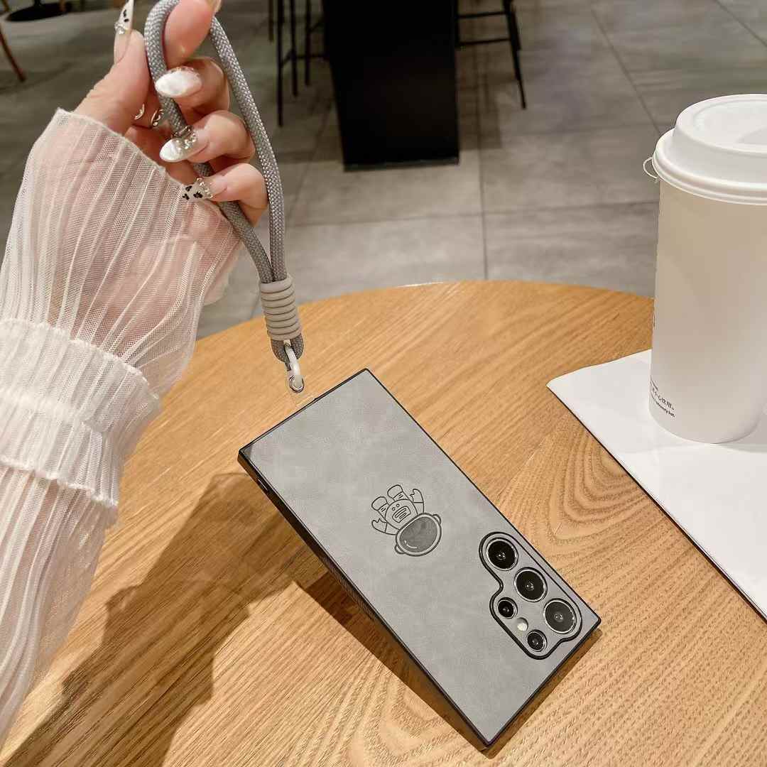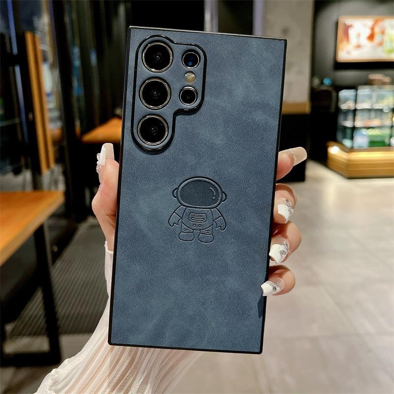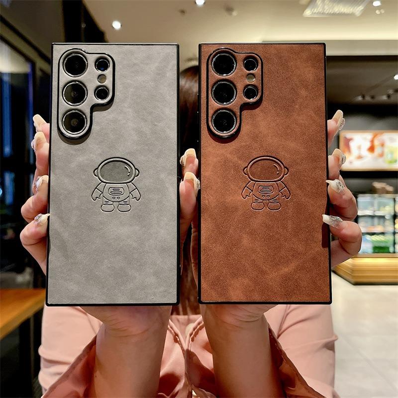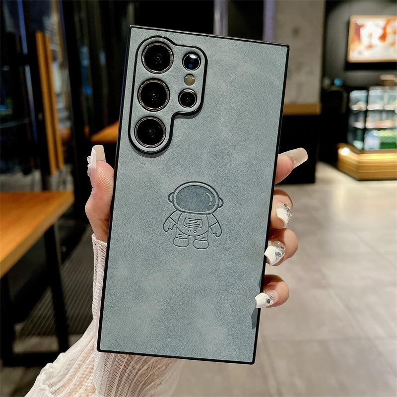 For Samsung S25Ultra S25Edge S24 S23 S22 S21 Note20 A16 A26 A36 A55 A56 Case With Weave Wristband, Astronaut Pattern Matte Suede Leather Shockproof Hard Phone Case