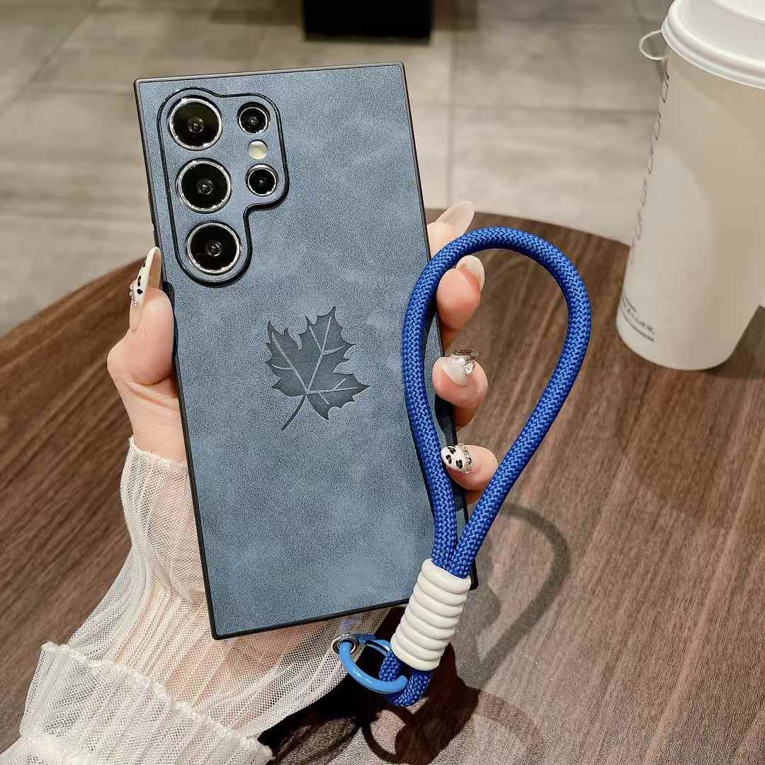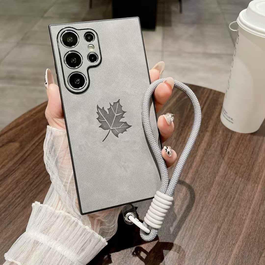 For Samsung S25Ultra S25Edge S24 S23 S22 S21 Note20 A16 A26 A36 A55 A56 Case With Weave Wristband, Maple Leaf Pattern Matte Suede Leather Shockproof Hard Phone Case