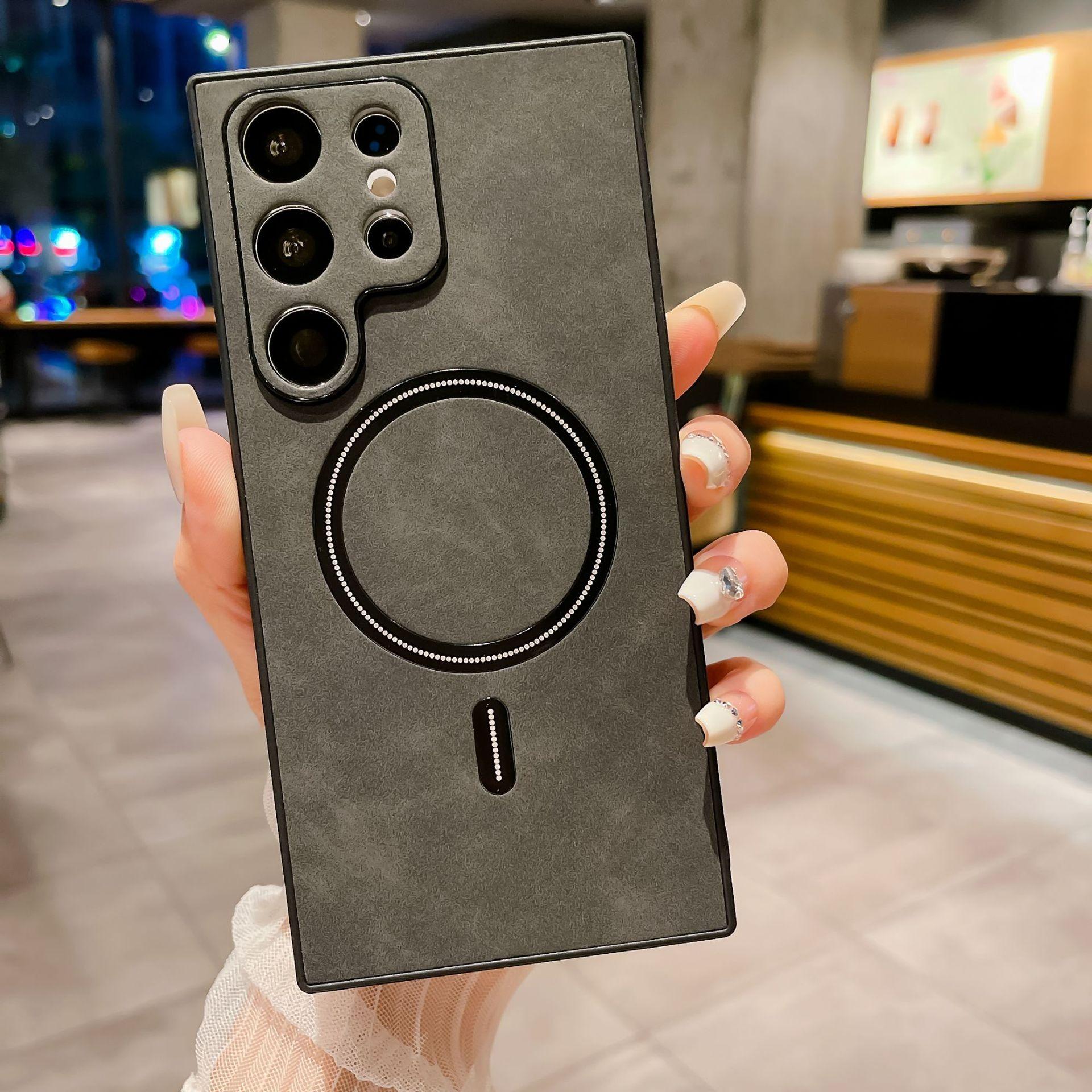For Samsung S25Ultra S25Edge S24 S23 S22 S21 Note20 Case, Matte Suede Leather Magnetic Shockproof Anti-Slip Hard Phone Case