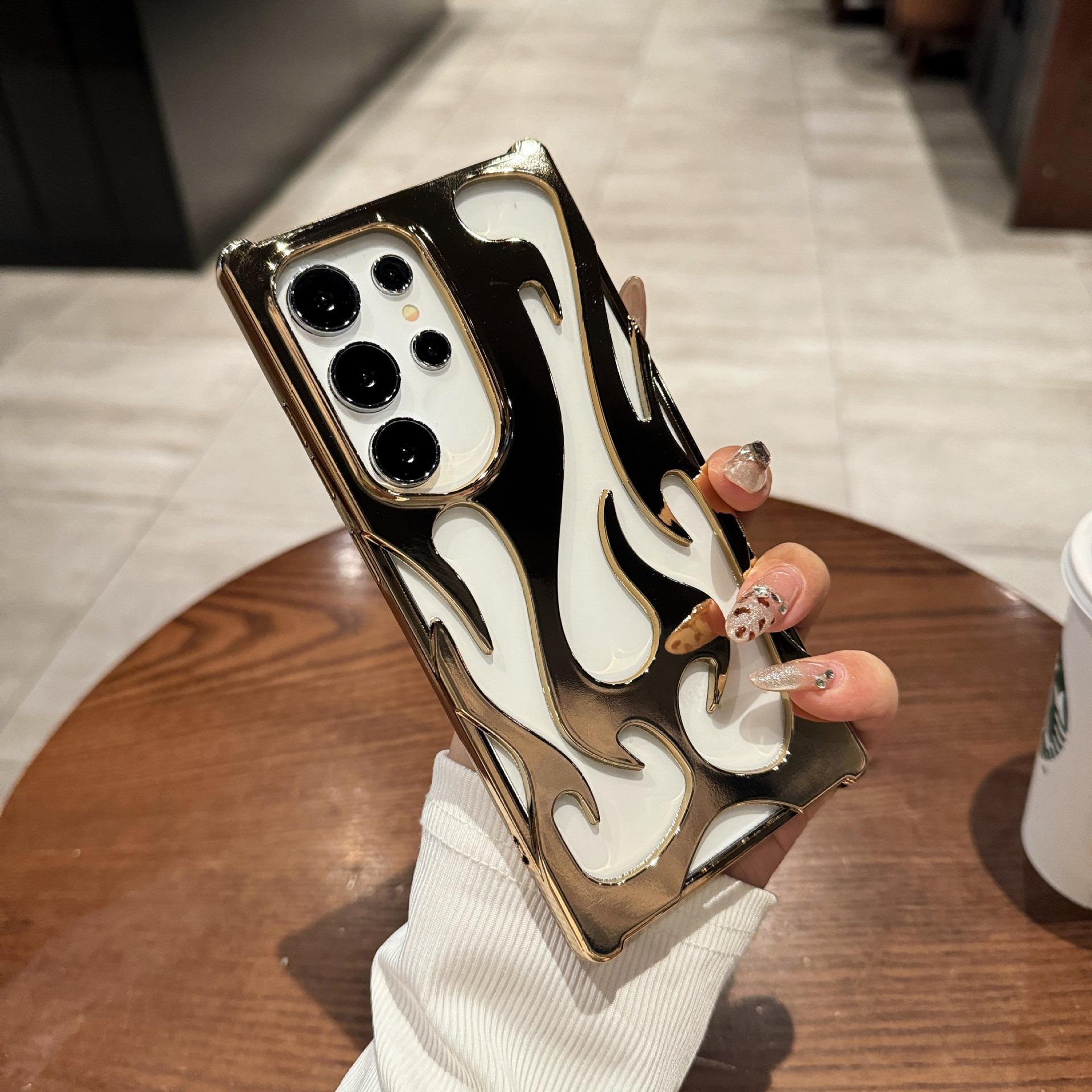 Heat Dissipation Four Corner Shockproof Plating/Matte Fire Pattern Hollow Out Cooling Phone Case For Samsung S25Ultra S24 S23 S22 A14 A15 A16 A06 A54 A55 Soft Full Cover