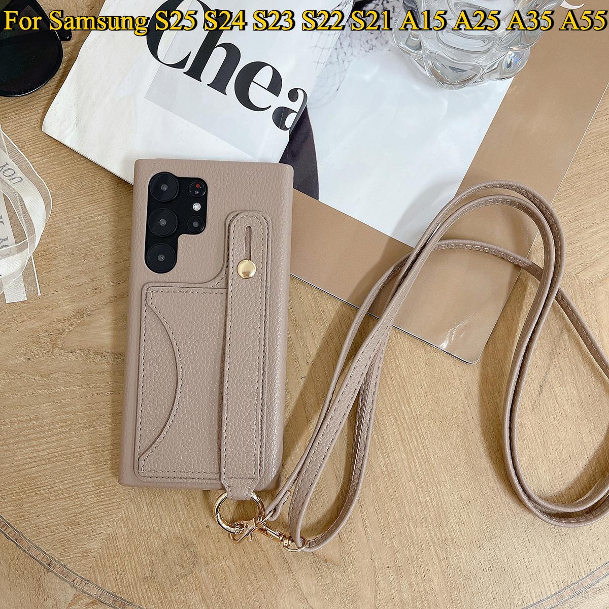 Wallet Case For Samsung S25 S24 S23 S22 S21 A15 A25 A35 A55 Card Holder Wrist Strap Lanyard Handbag Crossbody Leather Cover for Samsung A15 A25 A35 A55