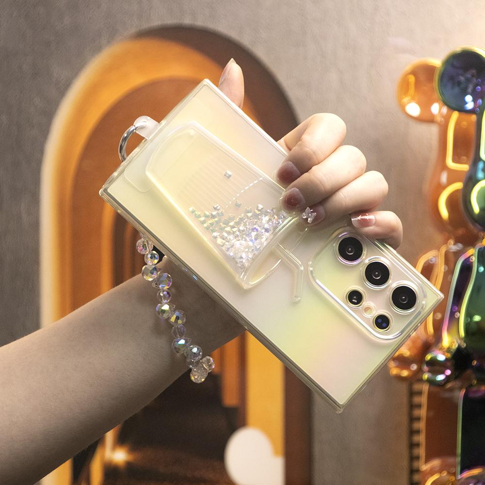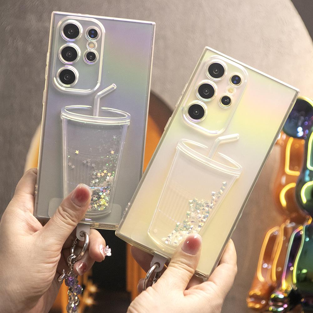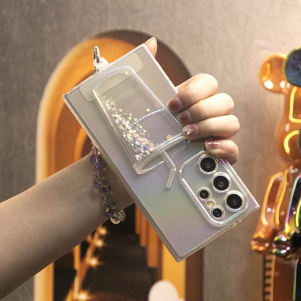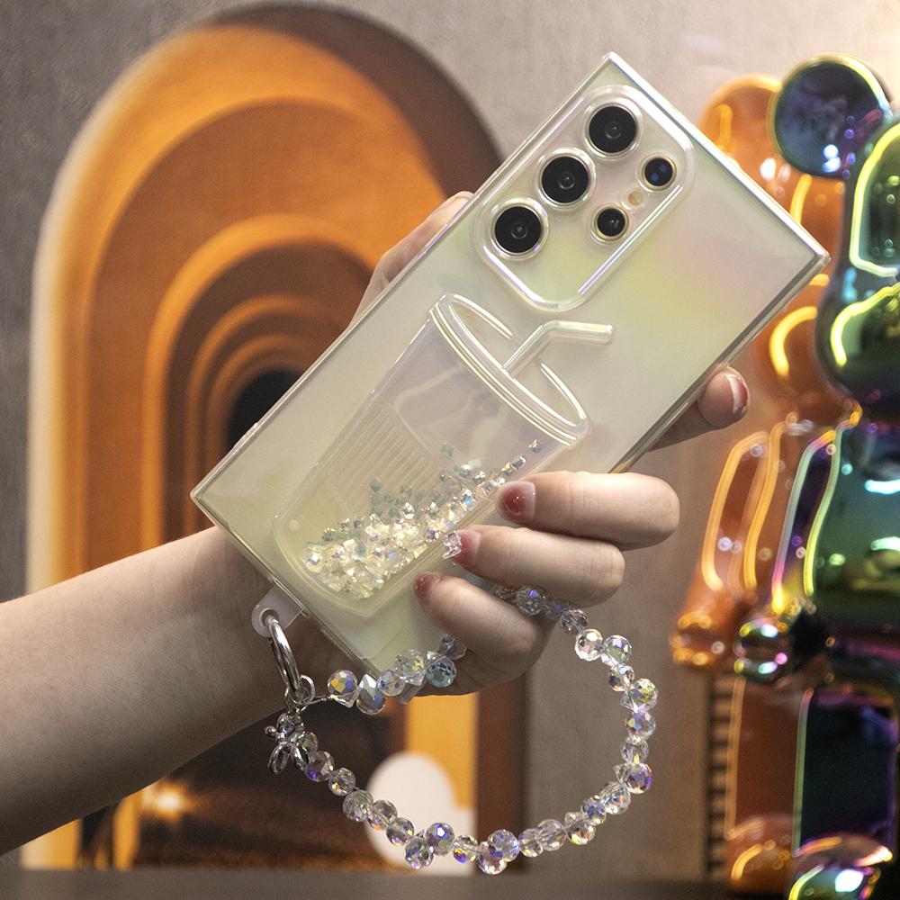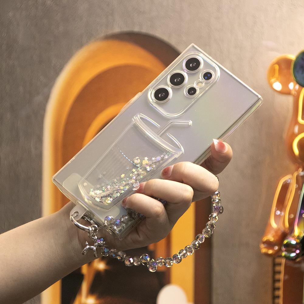 For Samsung S22 S23 S24 Ultra Case with Diamond Wristband, Flowing Liquid Sparkling Bling Glitter Cup Style Fun Sparkle Quicksand Design Transparent Soft TPU Protective Clear Case
