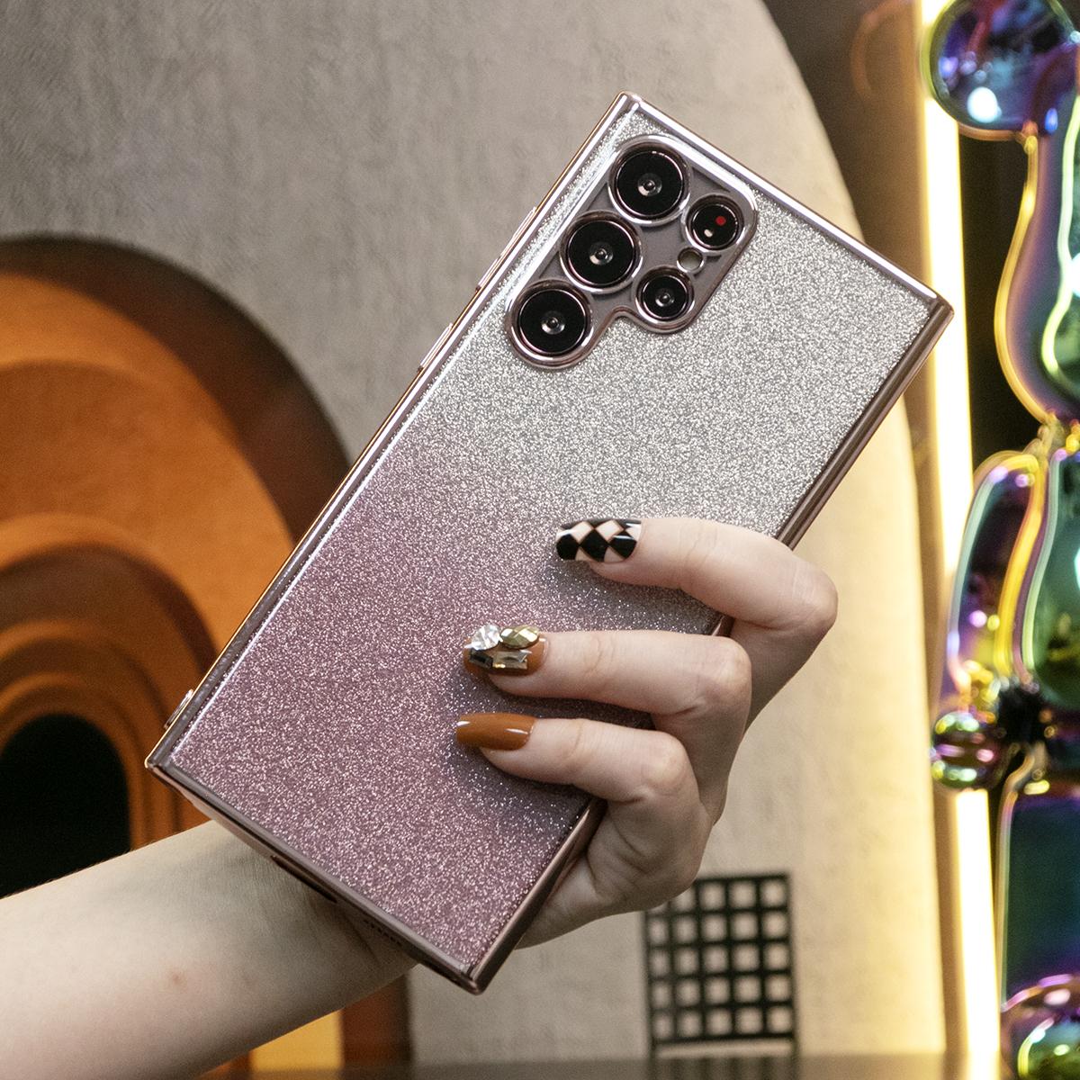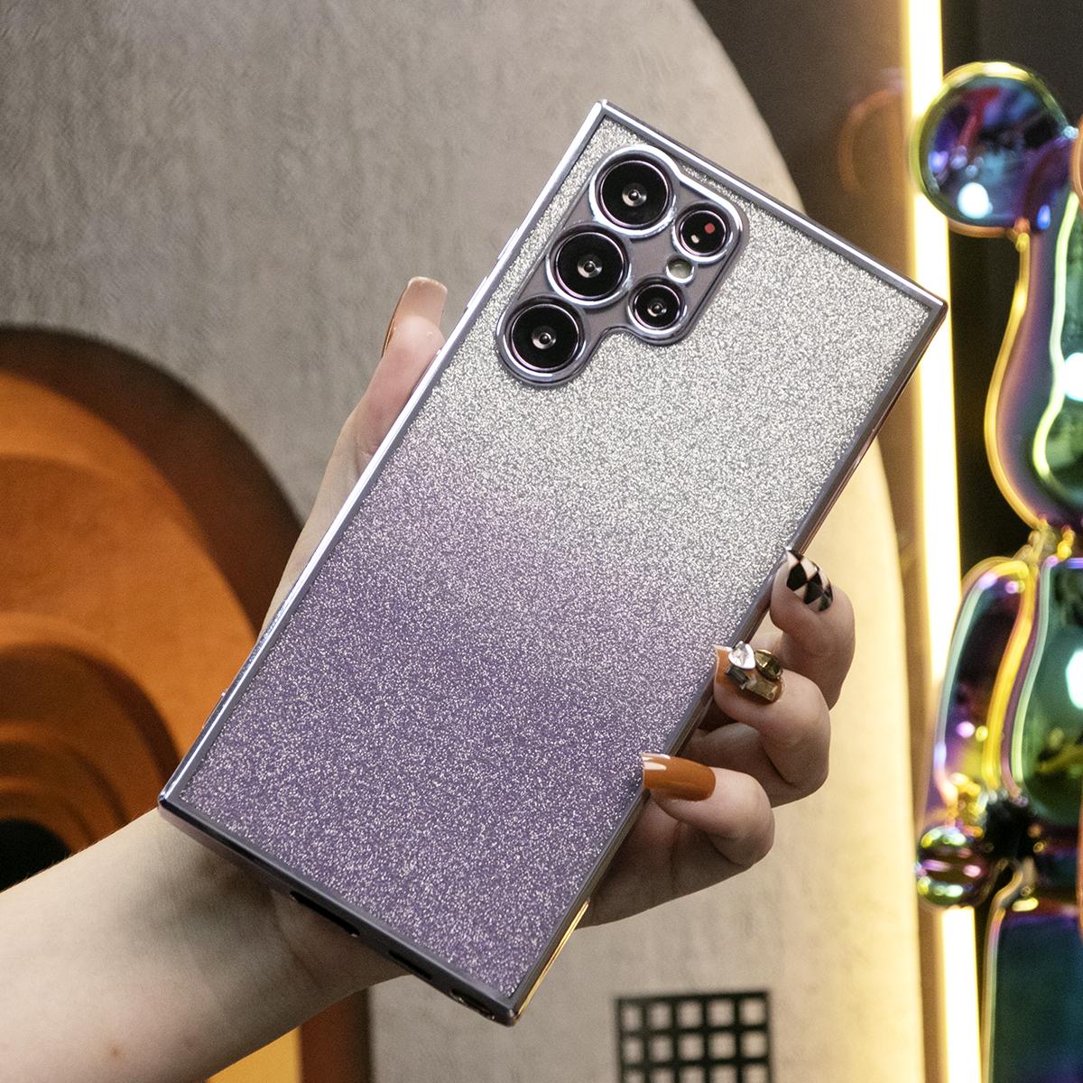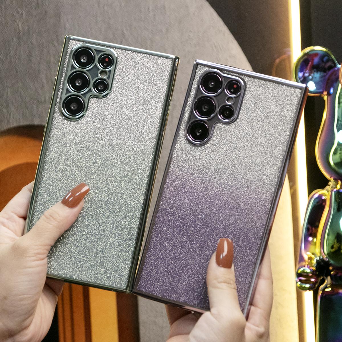 Glitter Transparent Gradient Plating Basic Phone Case For Samsung S24Ultra S24FE S24 S23 S22 S21 FE Plus Ultra Soft TPU Back Cover