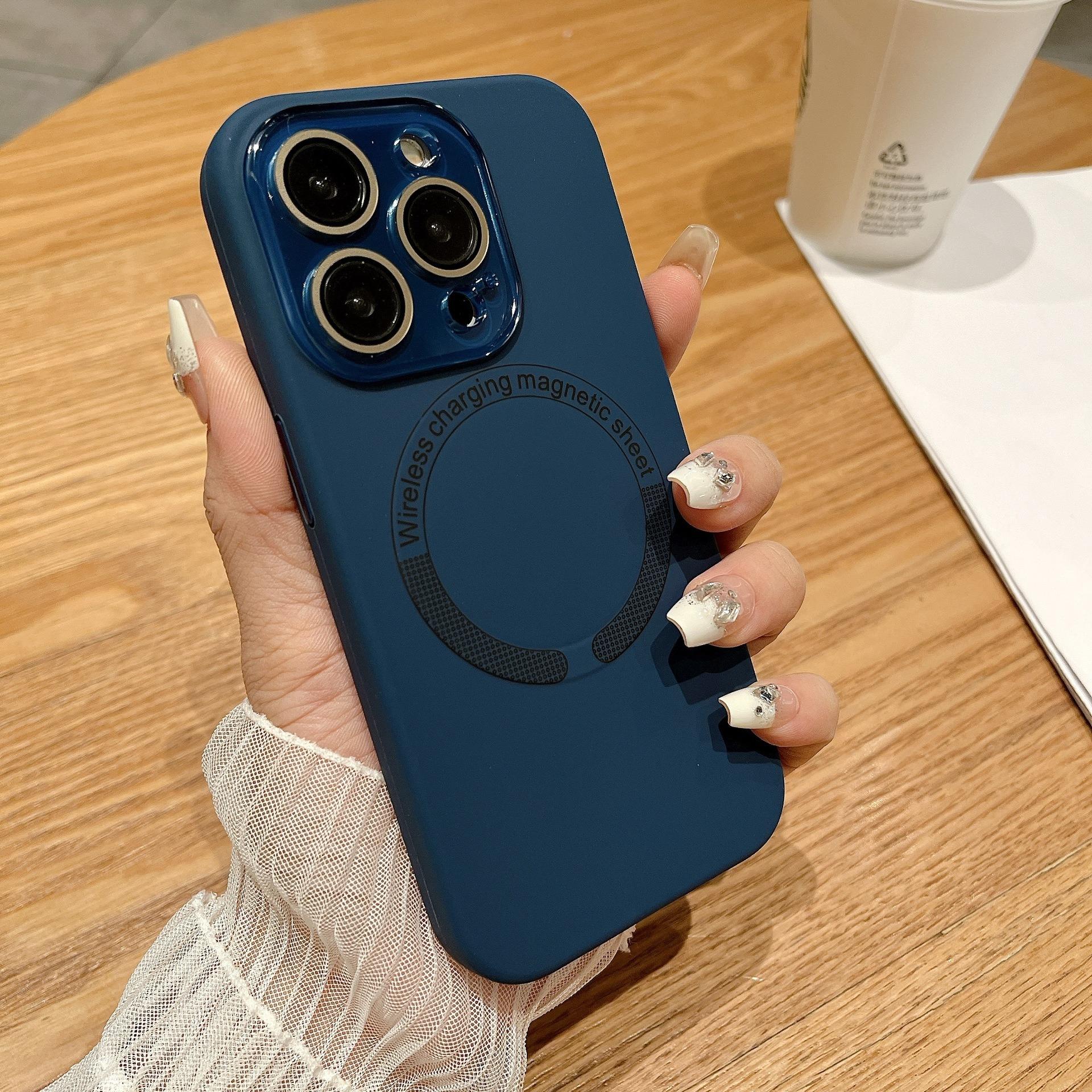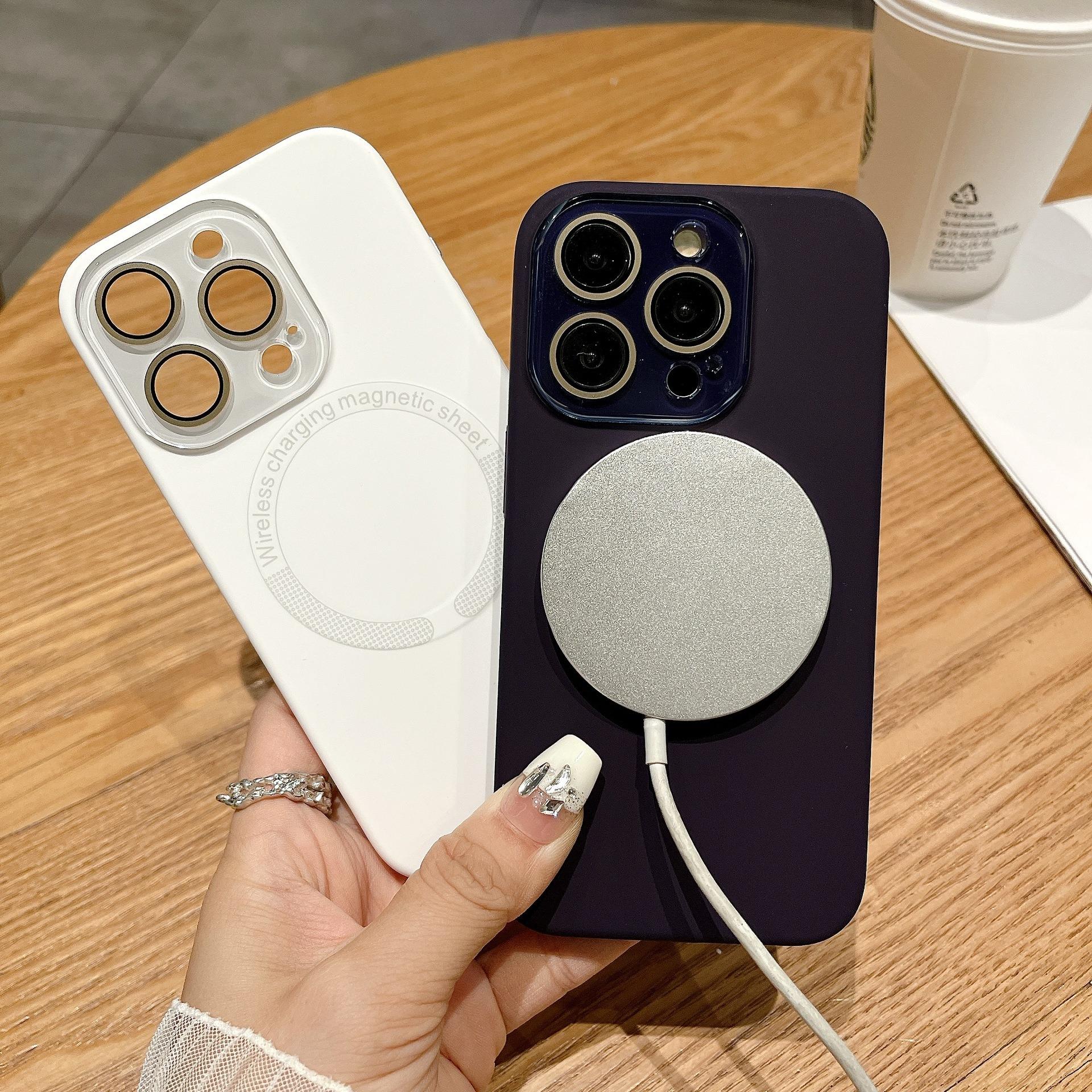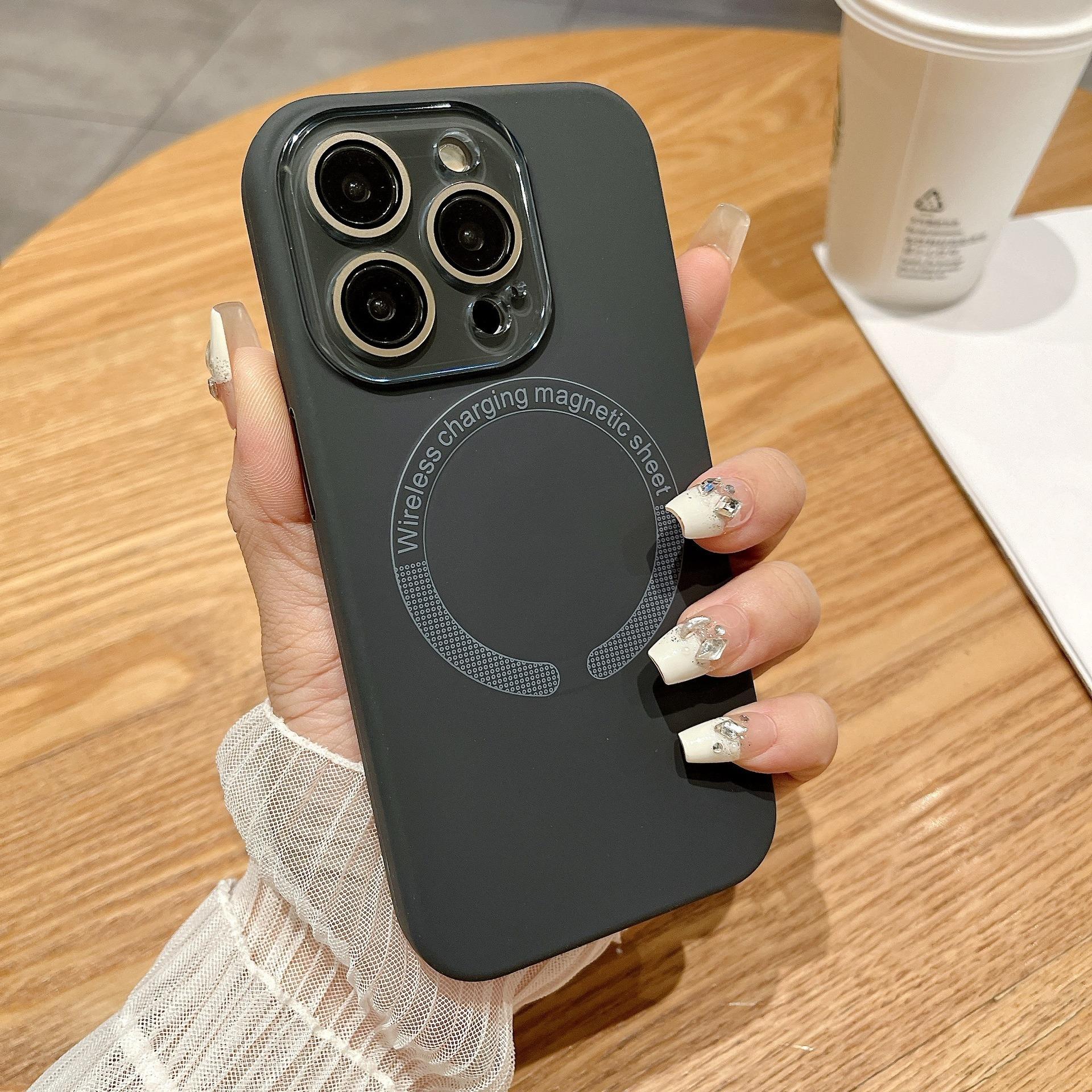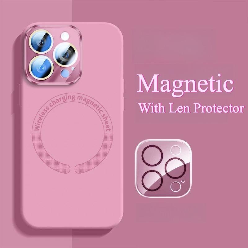 Matte Magnetic Silicone Slim Phone Case With Len Protector For iPhone 16ProMax 15 14 13 12 11 Skin Feel Shockproof Soft Full Cover
