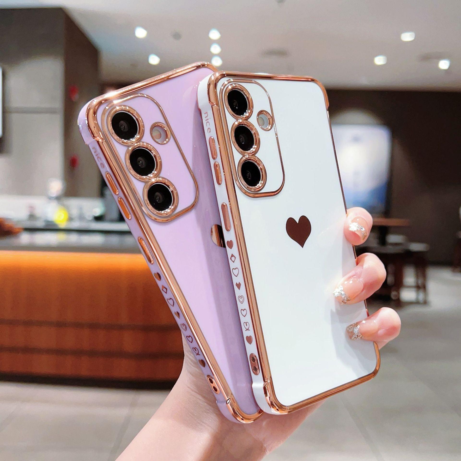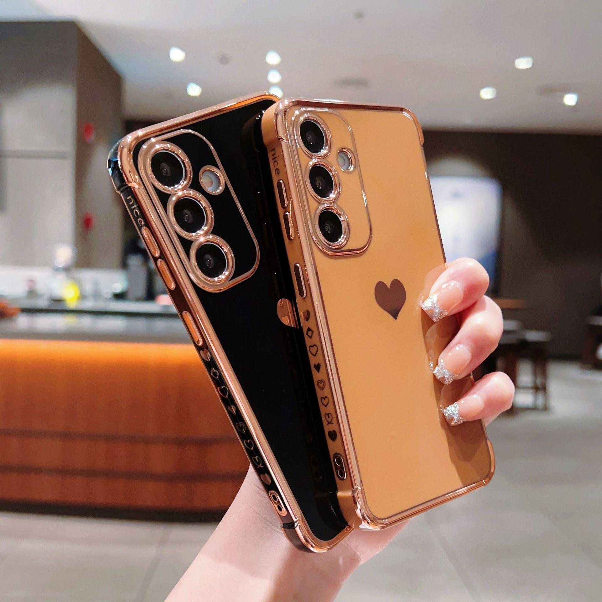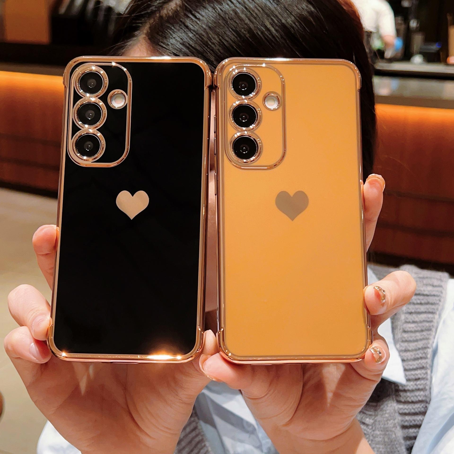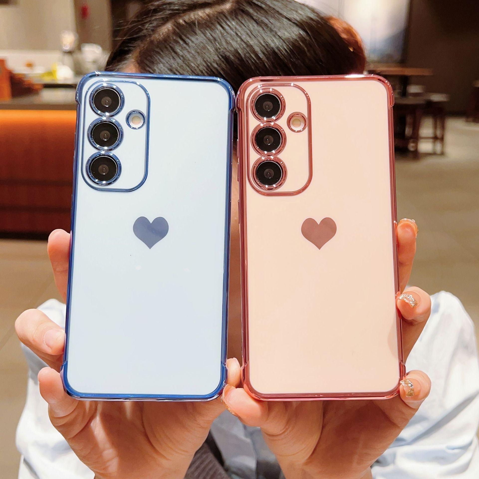 Plating Love Heart TPU Basic Phone Case For Samsung A14 A15 A16 A24 A25 A33 A34 A35 A36 A53 A54 A55 A56 Shockproof Soft Full Cover