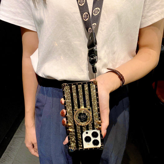Luxury Glitter Dazzling Phantom Flower Case for iPhone 16ProMax 16 15 14 13 12 11 Plus Pro Max Fashion Bracket Lanyard Square Case Back Cover